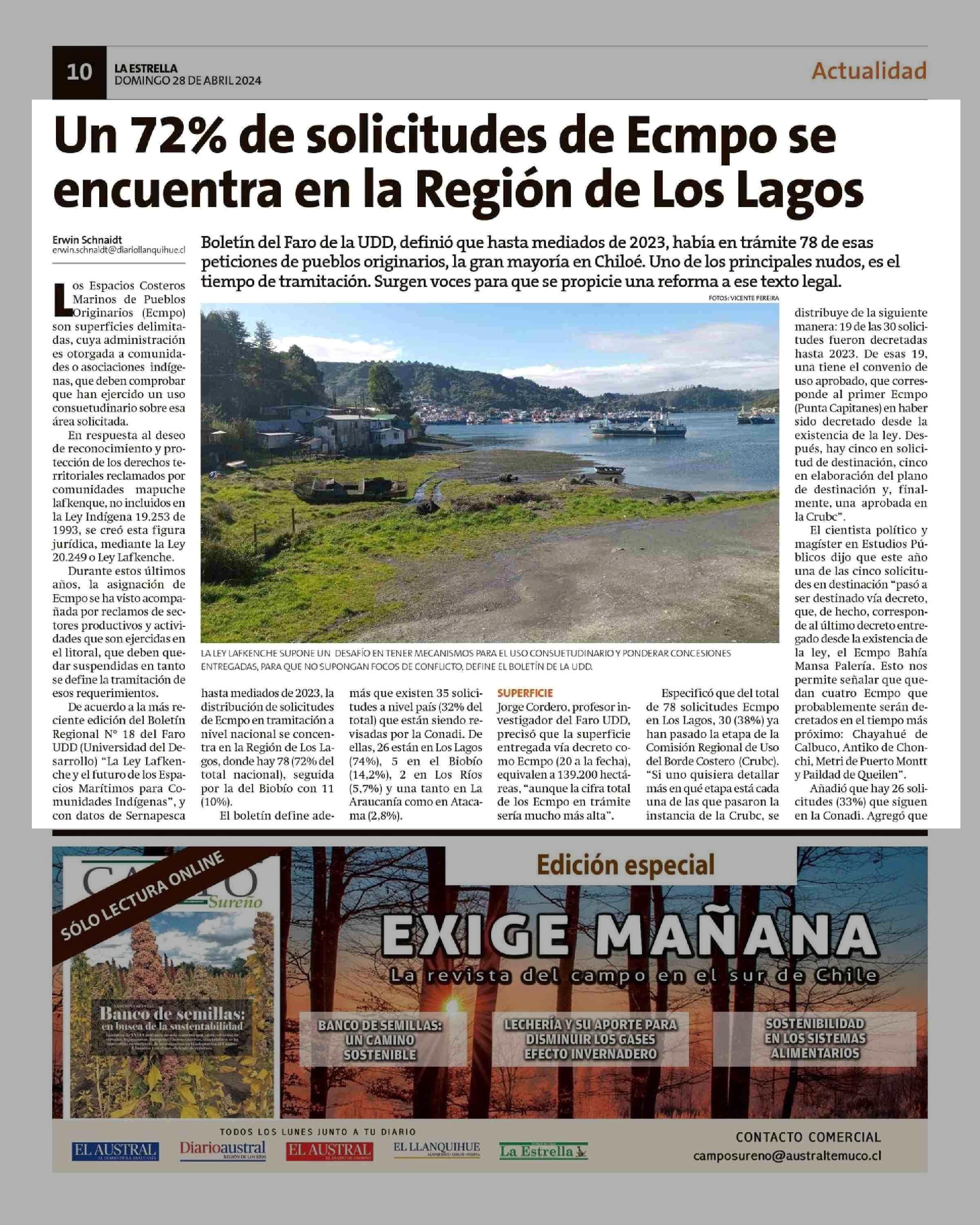 Un 72% de solicitudes de Ecmpo se encuentra en la Región de Los Lagos 28-04-2024 La Estrella de Chiloé |