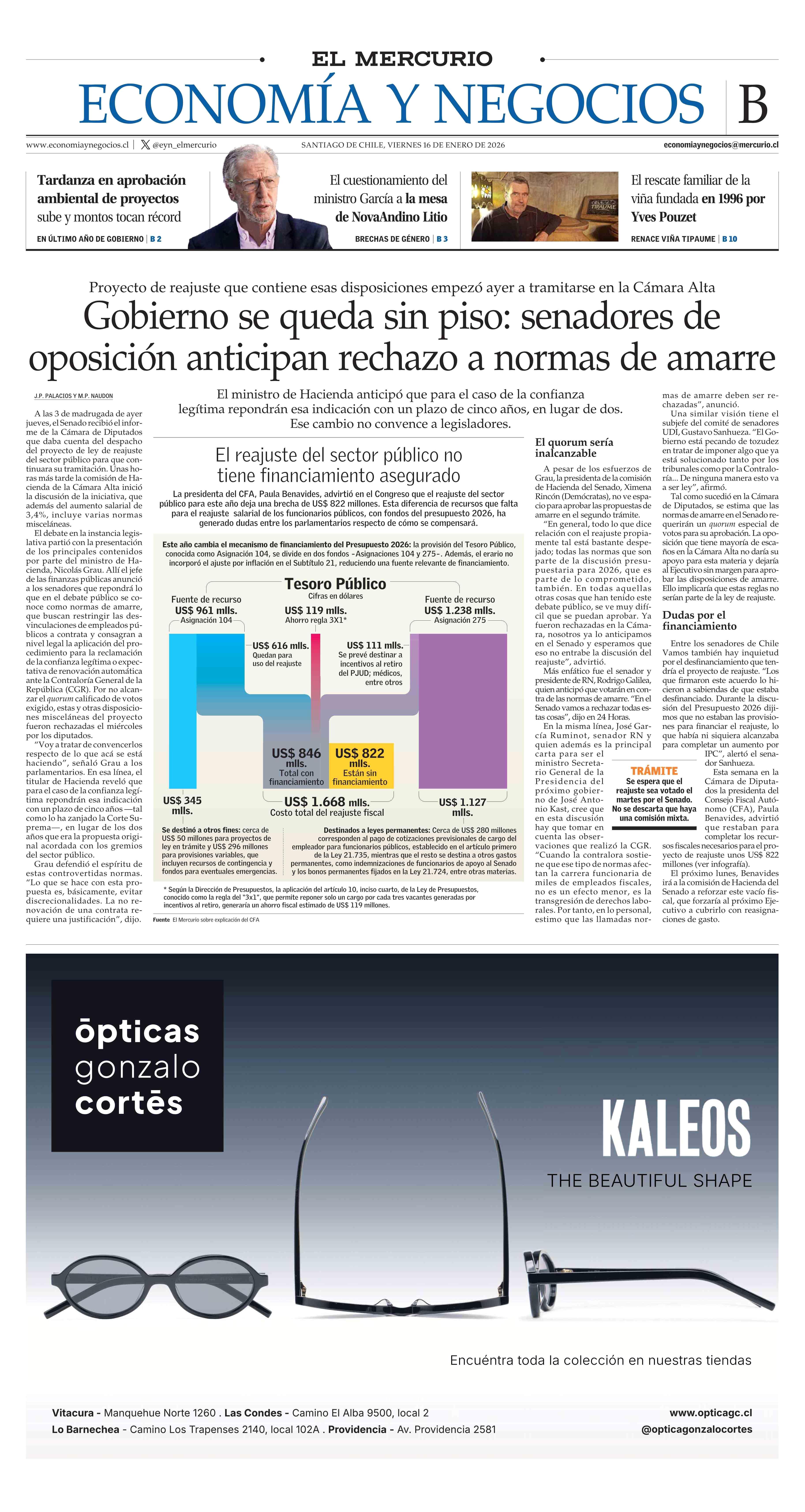 | Fecha: | 16-01-2026 | Sector: | Portada | Región: | Región Metropolitana de Santiago |