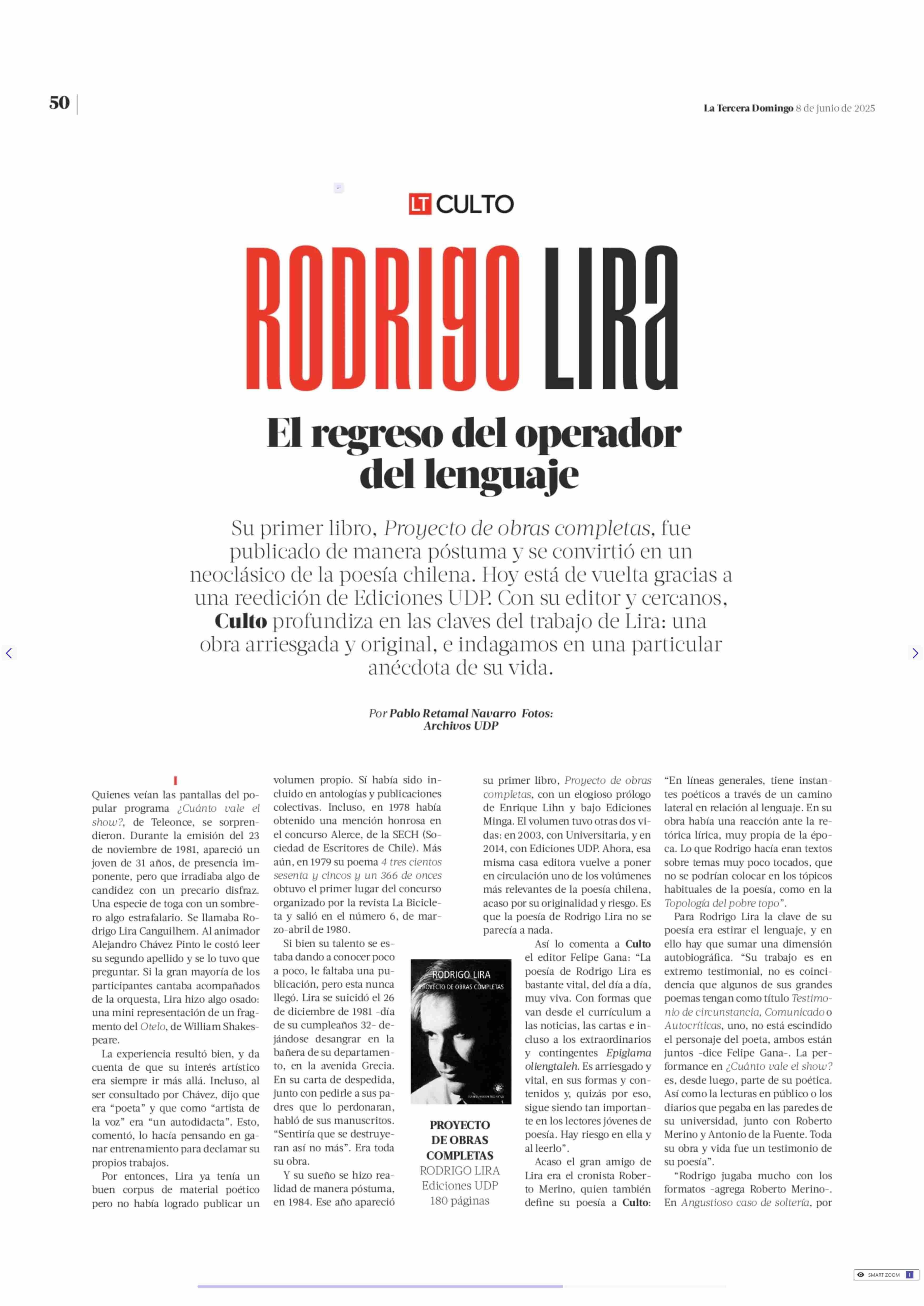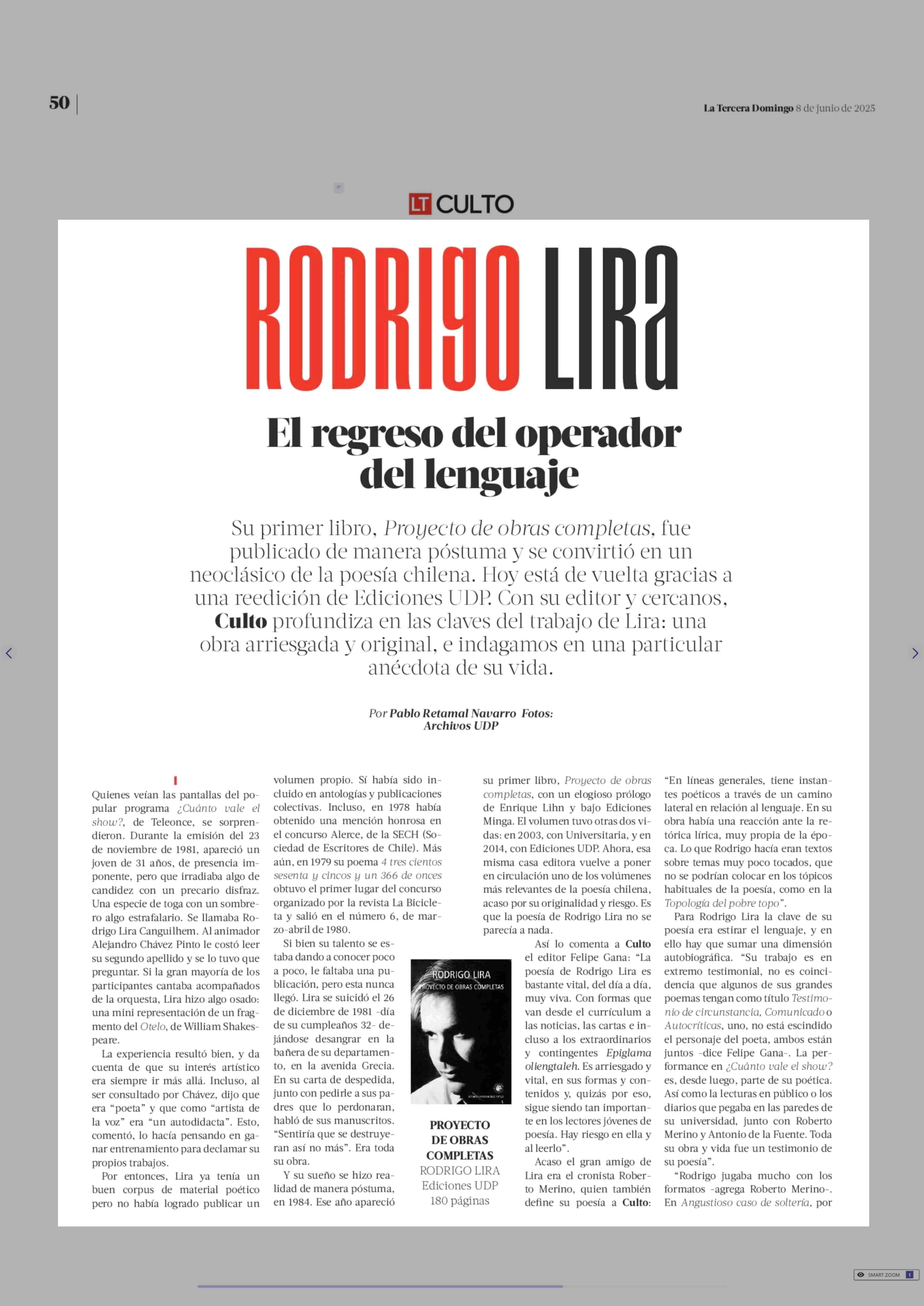 | Título: | Rodrigo Lira El regreso del operador del lenguaje |
