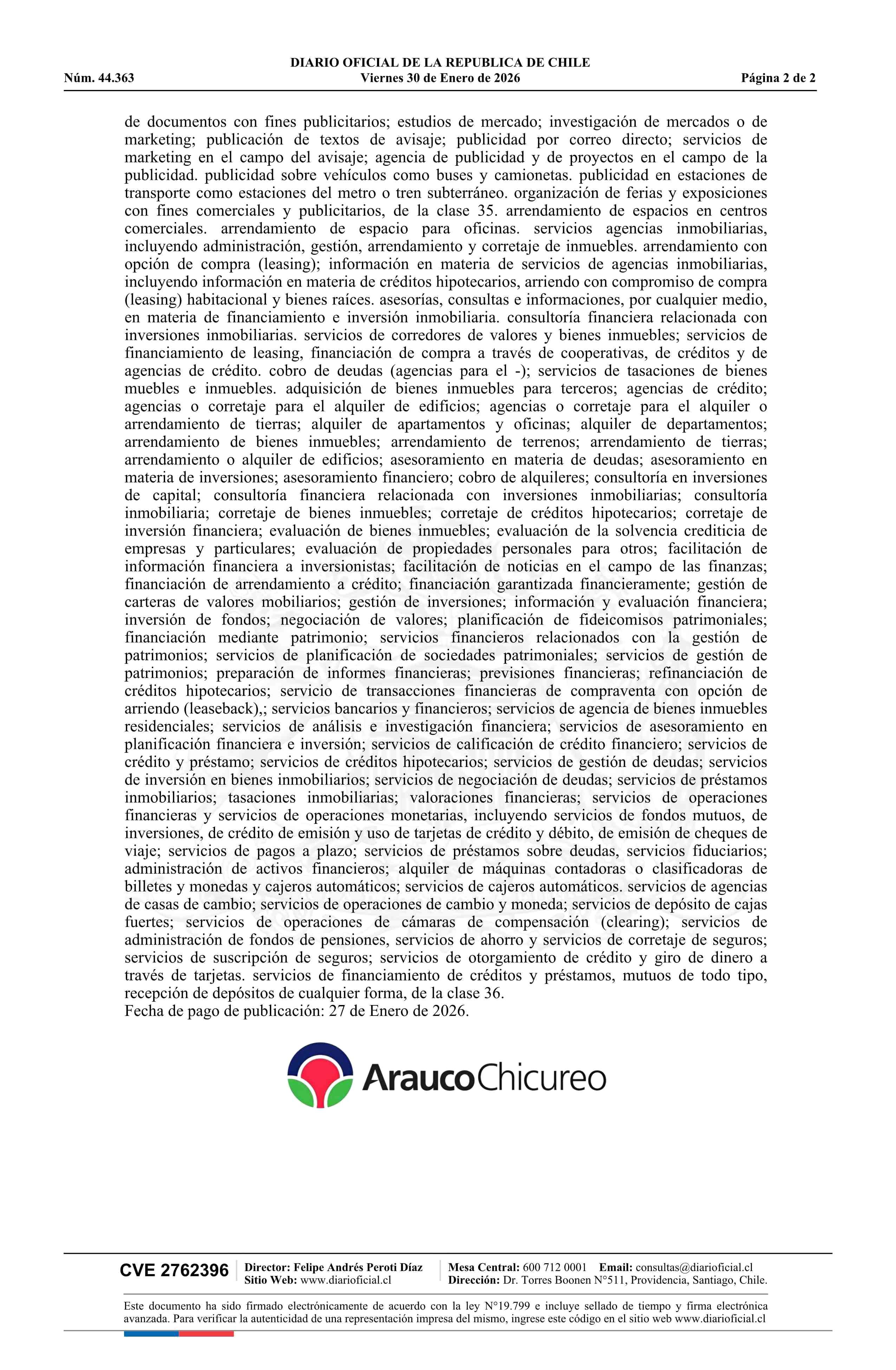Solicitud número 1649450.- Arauco Chicureo 30-01-2026 Diario Oficial Edición Electrónica |