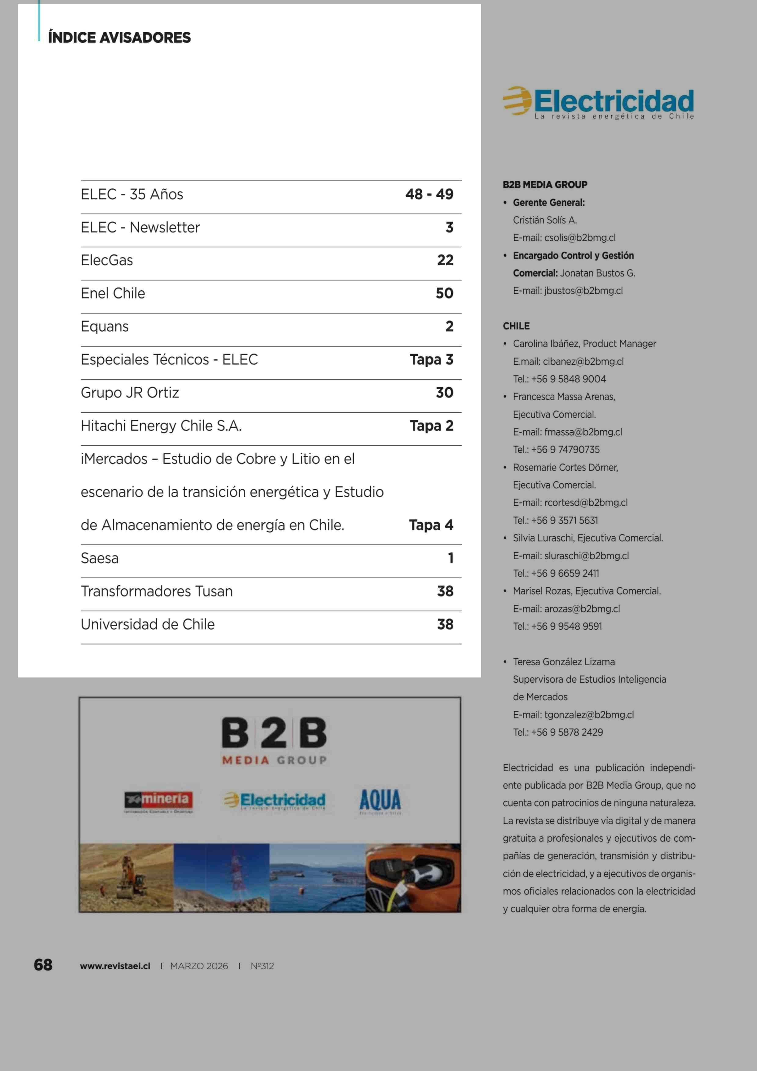 ÍNDICE AVISADORES 26-03-2026 Revista Electricidad |