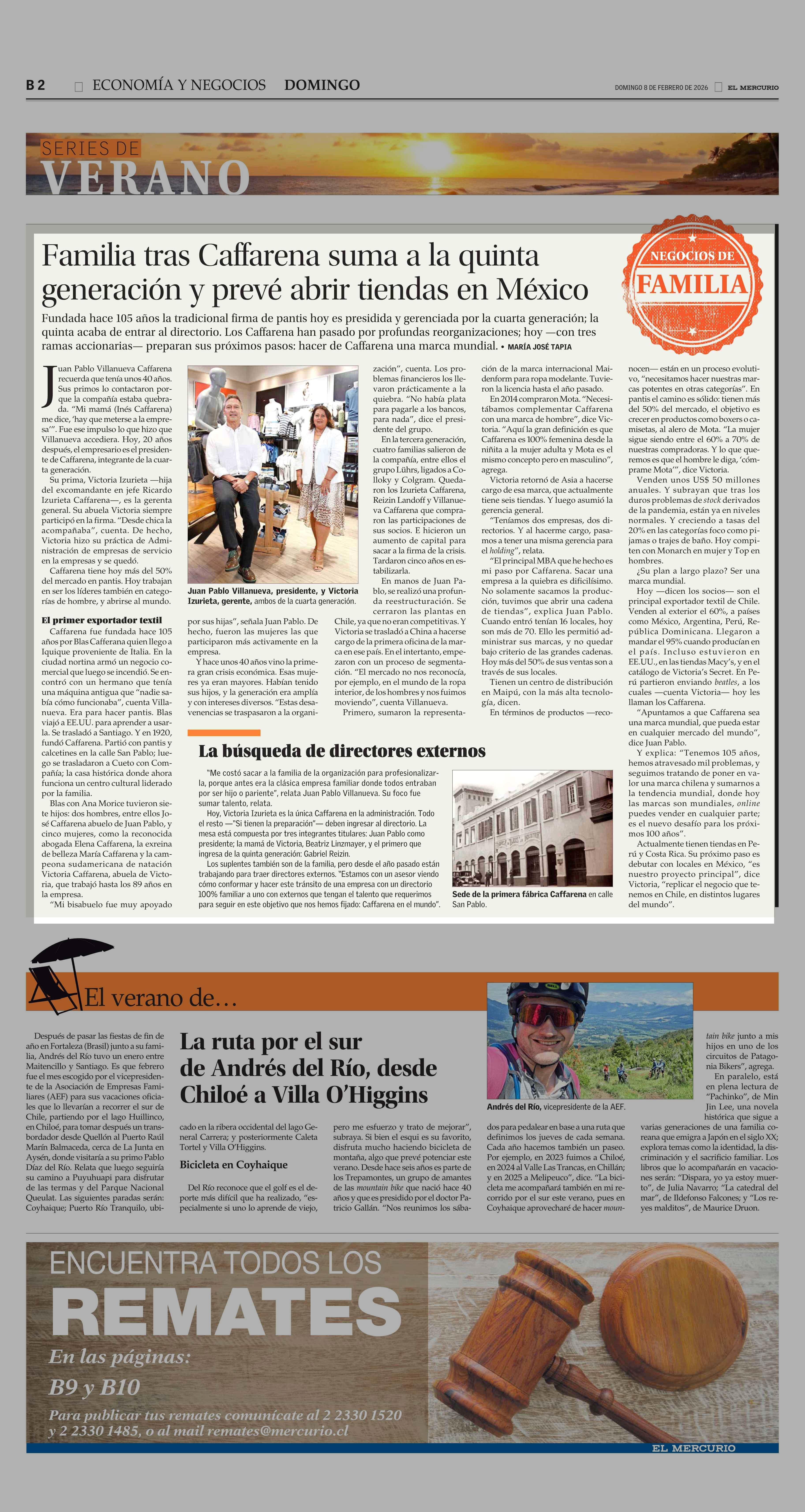Familia tras Caffarena suma a la quinta generación y prevé abrir tiendas en México 08-02-2026 El Mercurio |
