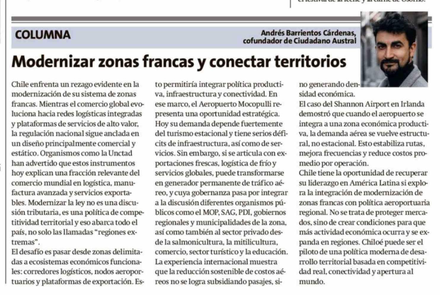 Título: Columnas de Opinión: Modernizar zonas francas y conectar territorios