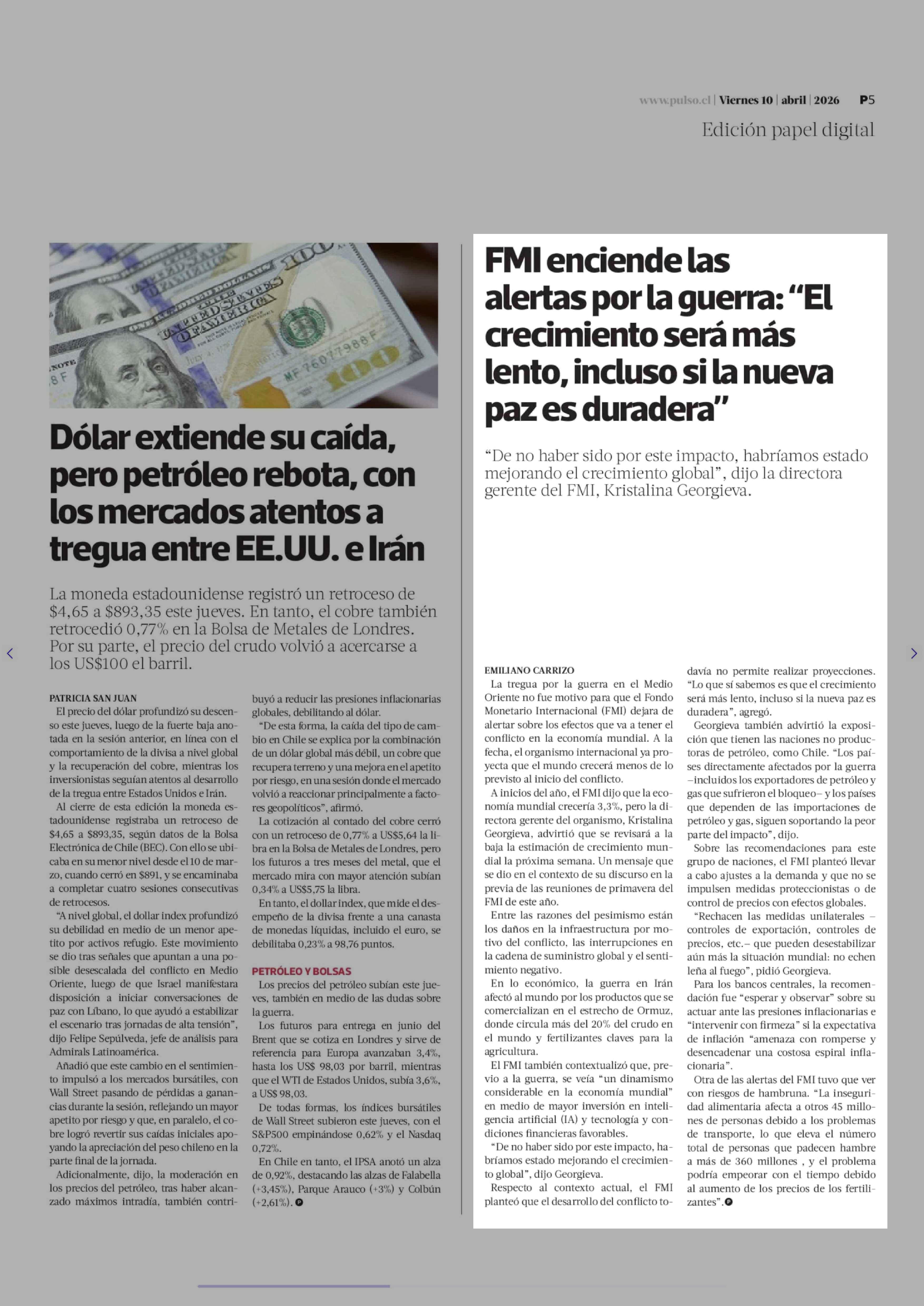 Título: FMI enciende las alertas por la guerra: "El crecimiento será más lento, incluso si la nueva paz es duradera"