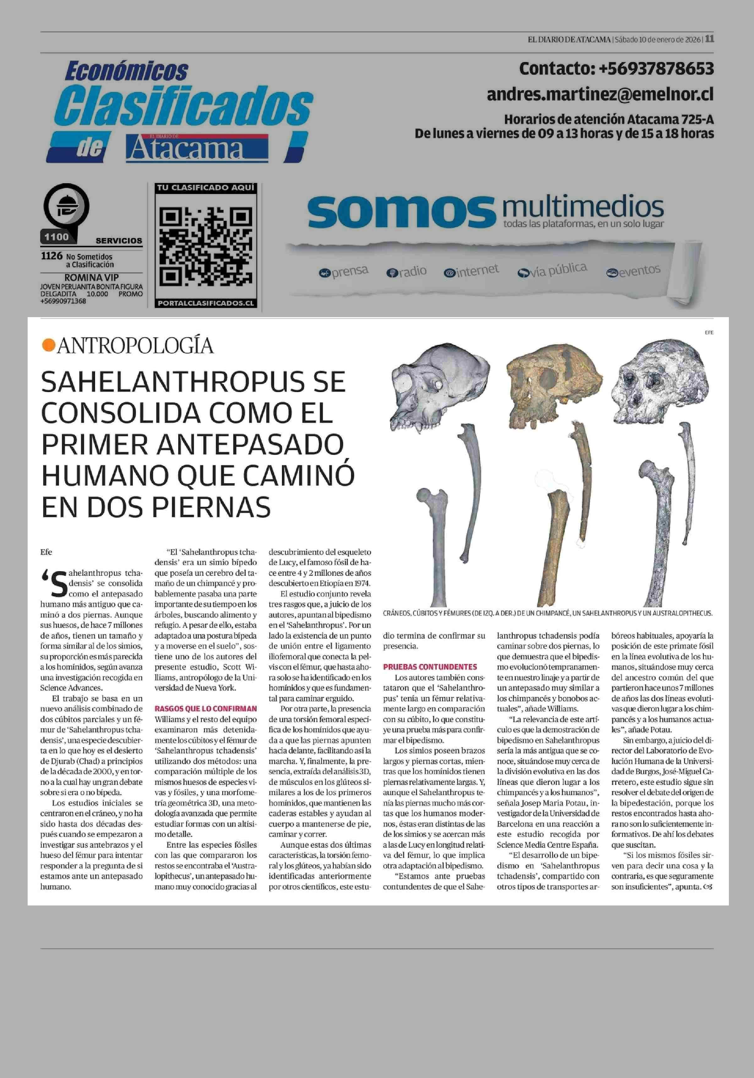 Título: SAHELANTHROPUS SE CONSOLIDA COMO EL PRIMER ANTEPASADO HUMANO QUE CAMINÓ EN DOS PIERNAS