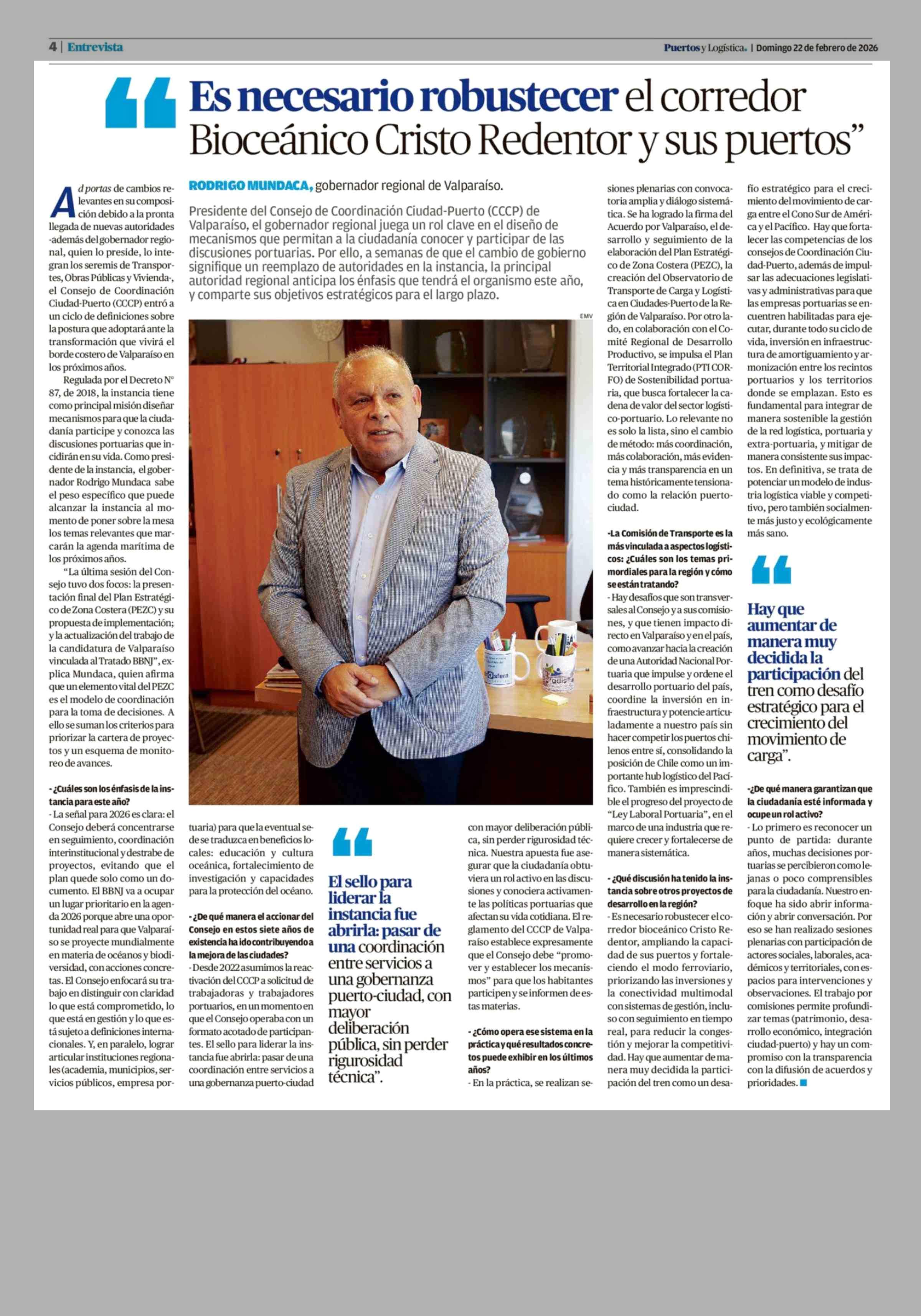 Título: Es necesario robustecer el corredor Bioceánico Cristo Redentor y sus puertos"