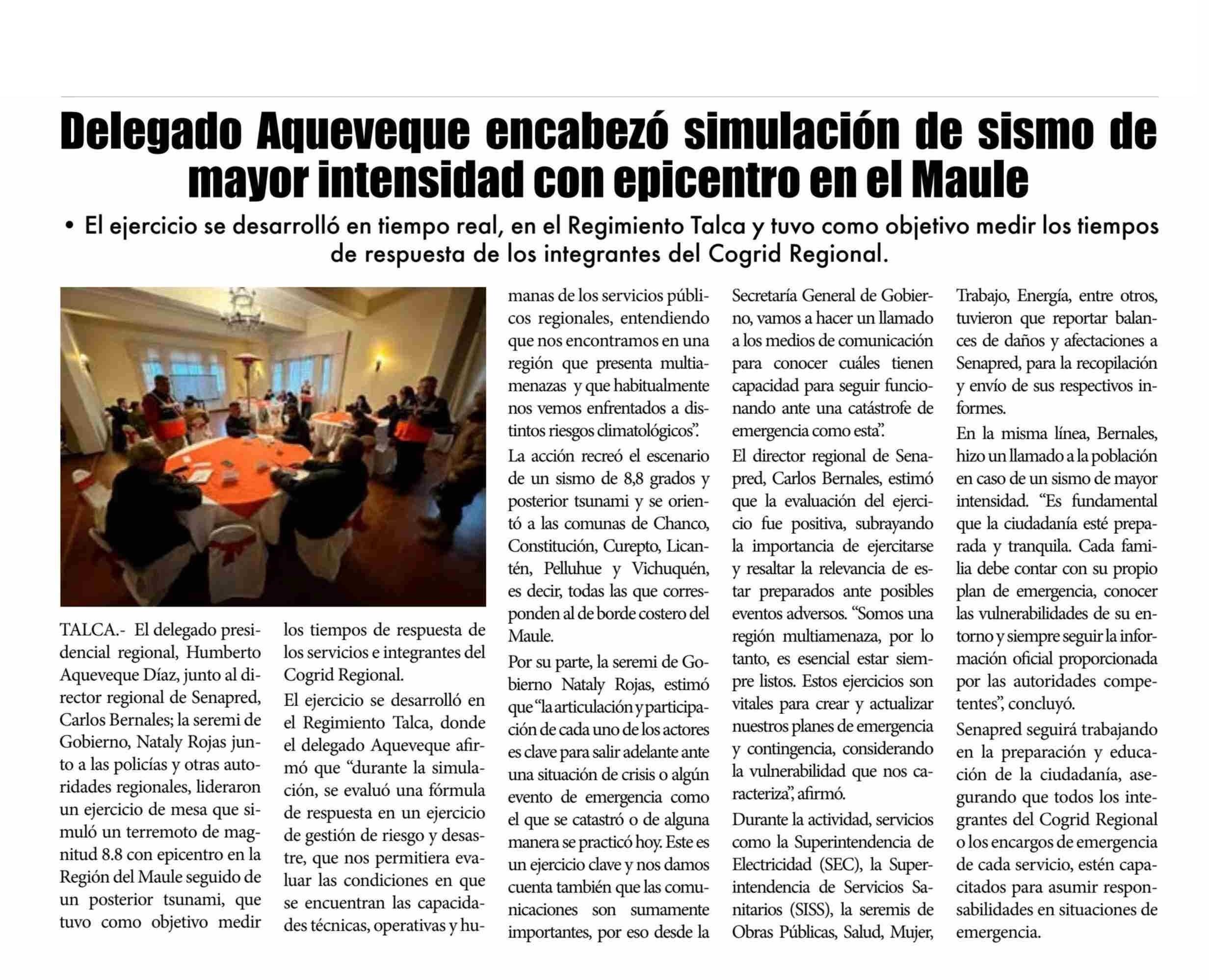 Delegado Aquevegue encabezó simulación de sismo de mayor intensidad con epicentro en el Maule 04-06-2025 El Lector |