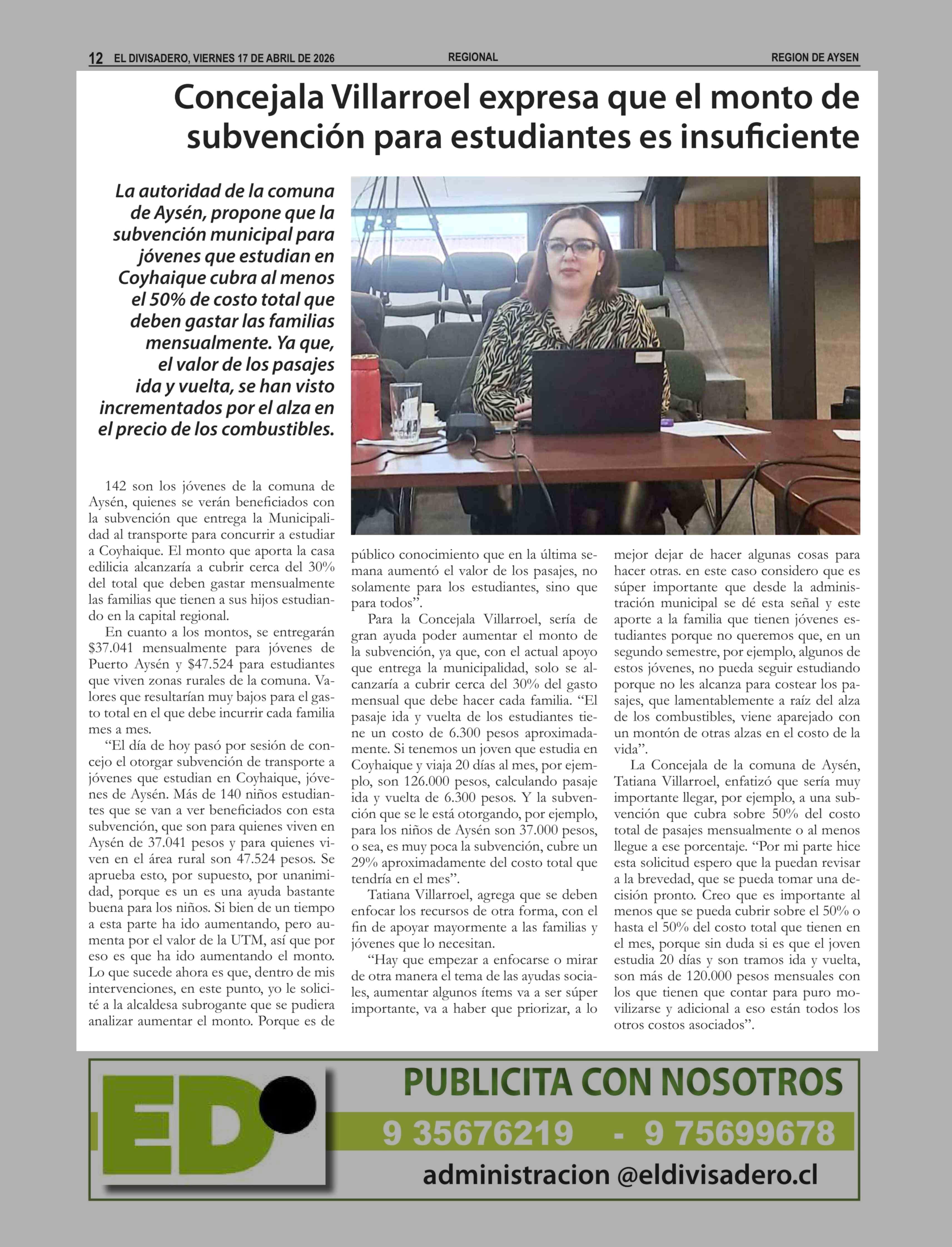 Concejala Villarroel expresa que el monto de subvención para estudiantes es insuficiente 17-04-2026 El Divisadero |