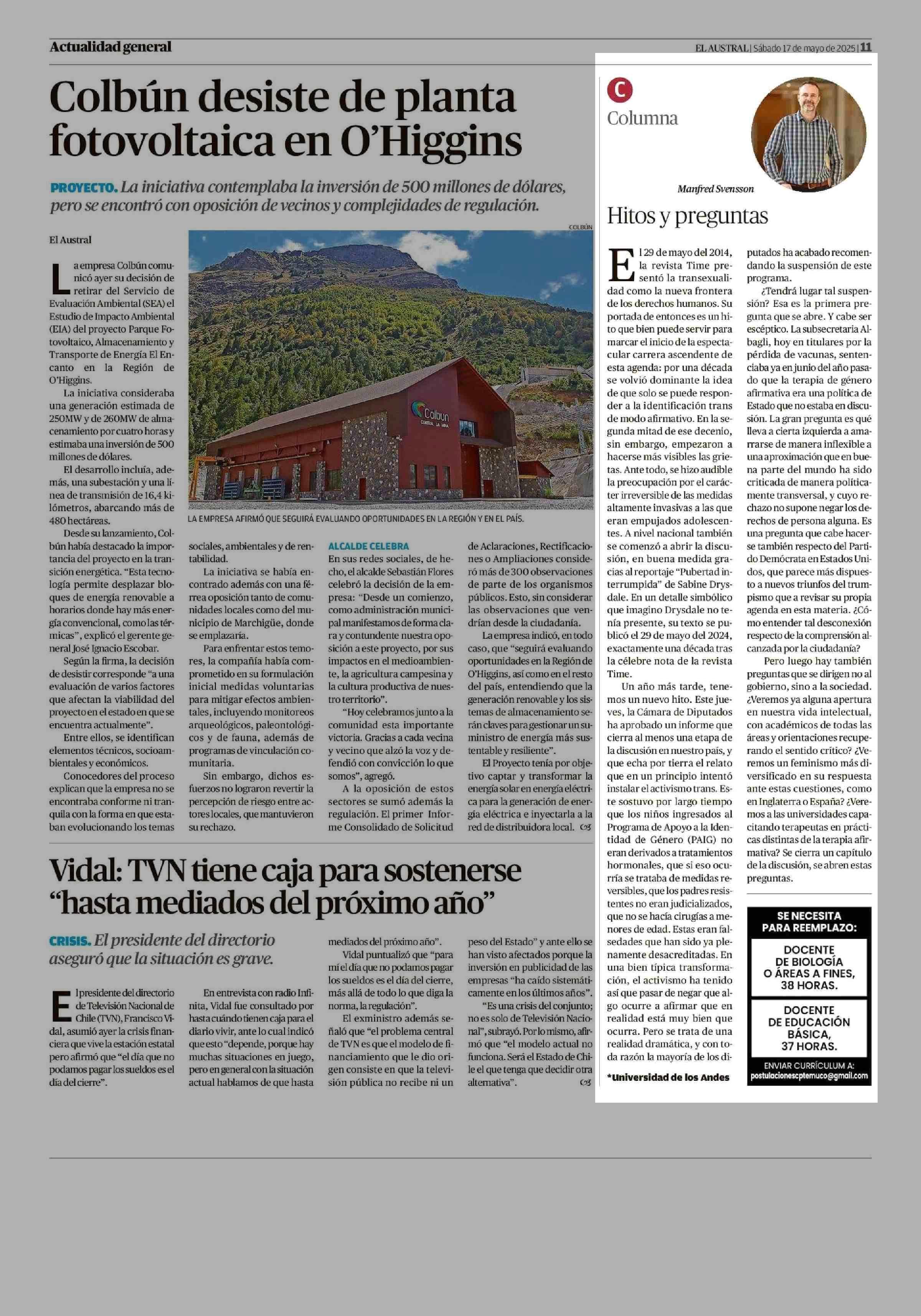 Fecha: 17-05-2025 Sector: Columnas de Opinión Región: Región de la Araucanía
