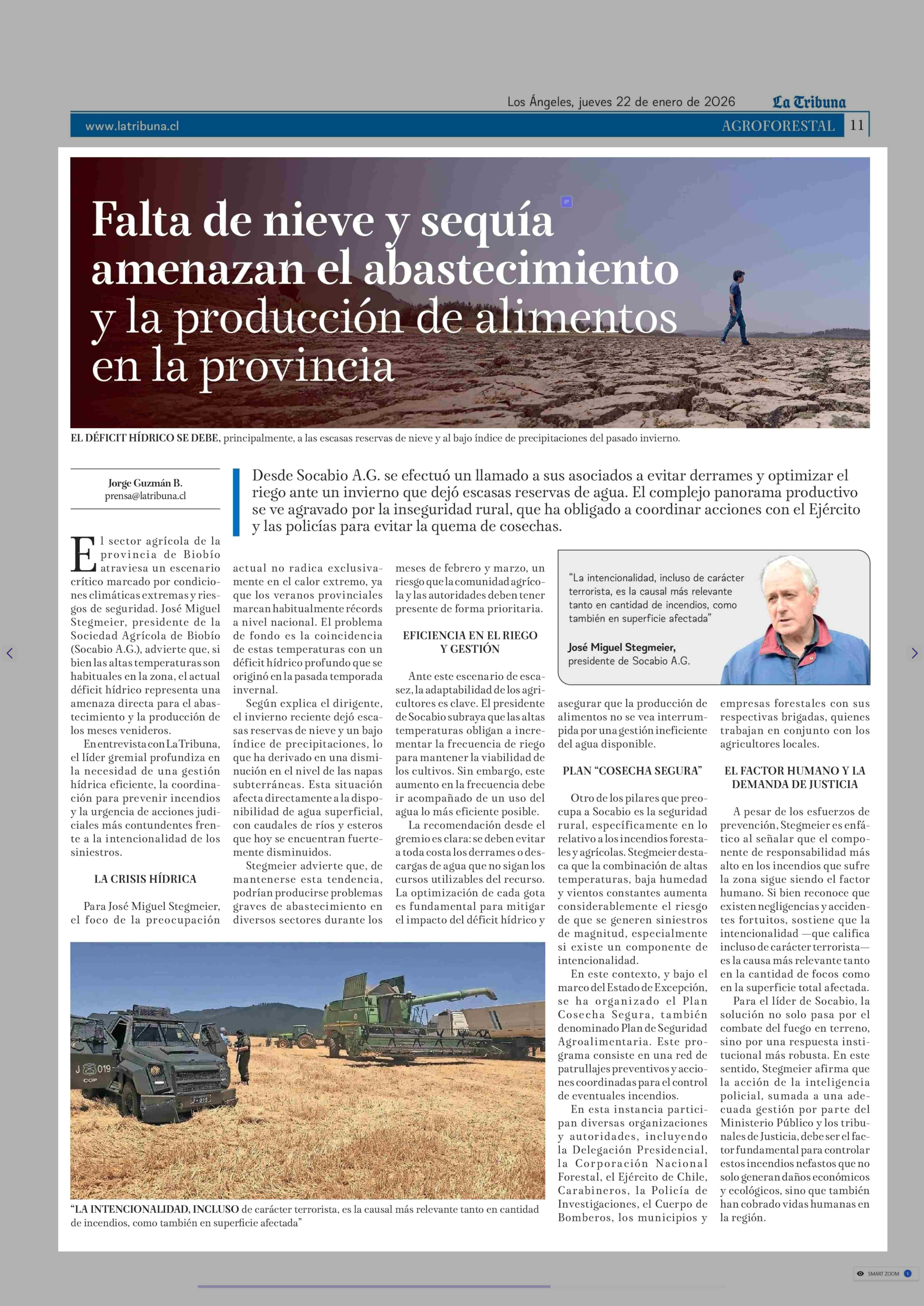 Falta de nieve y sequía amenazan el abastecimiento y la producción de alimentos en la provincia 22-01-2026 La Tribuna |