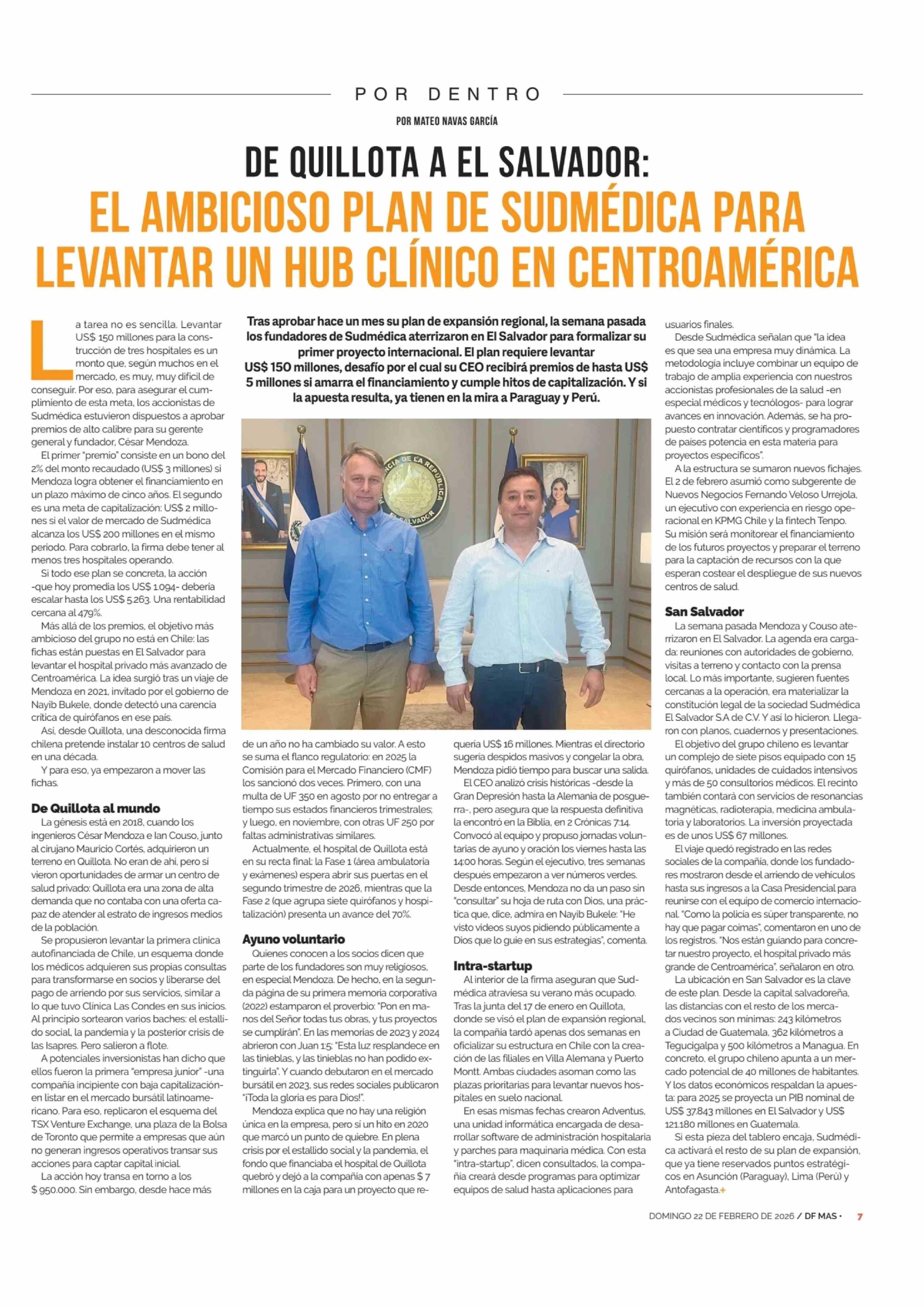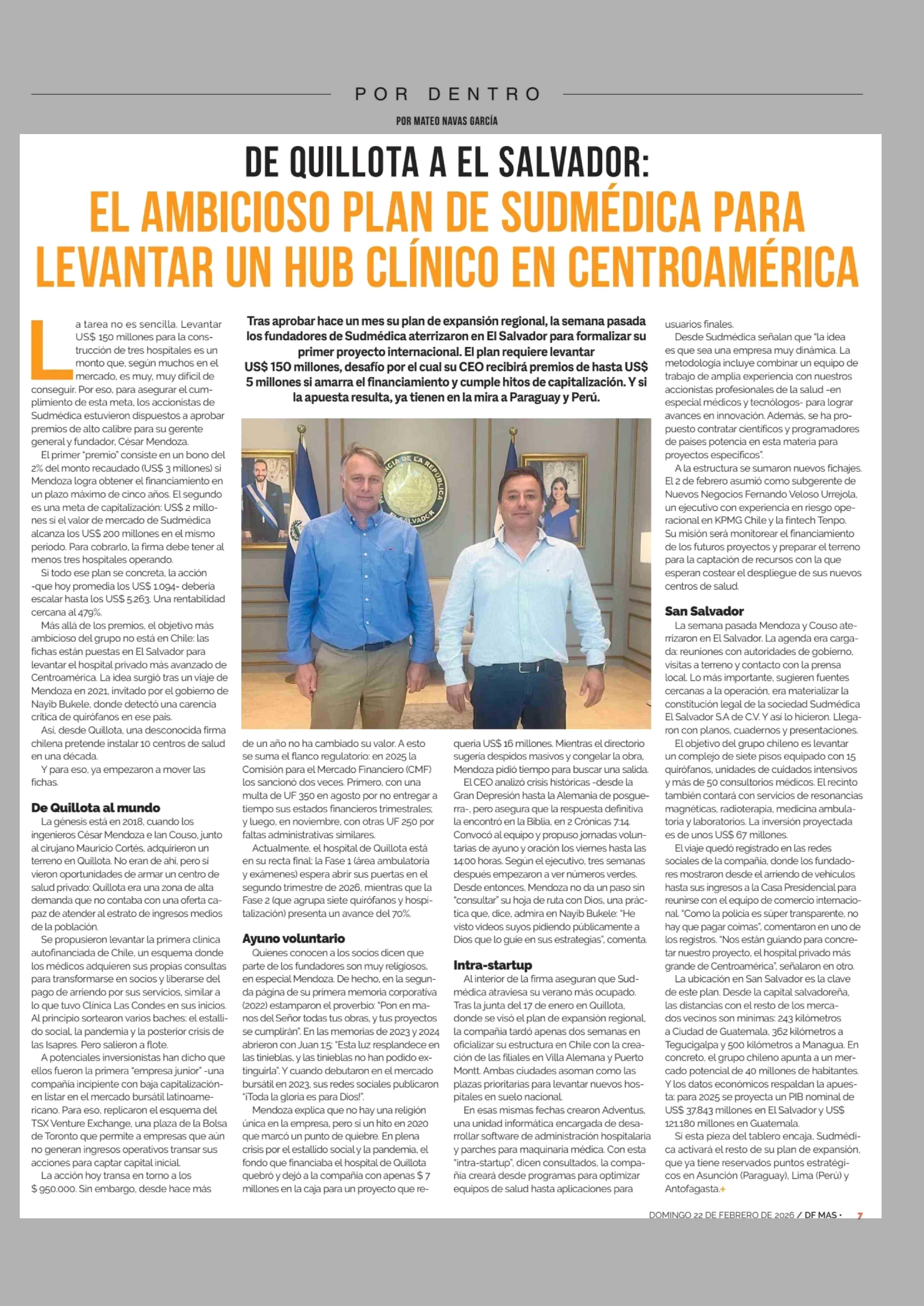 Título: DE QUILLOTA AEL SALVADOR: EL AMBICIOSO PLAN DE SUDMÉDICA PARA LEVANTAR UN HUB CLÍNICO EN CENTROAMÉRICA