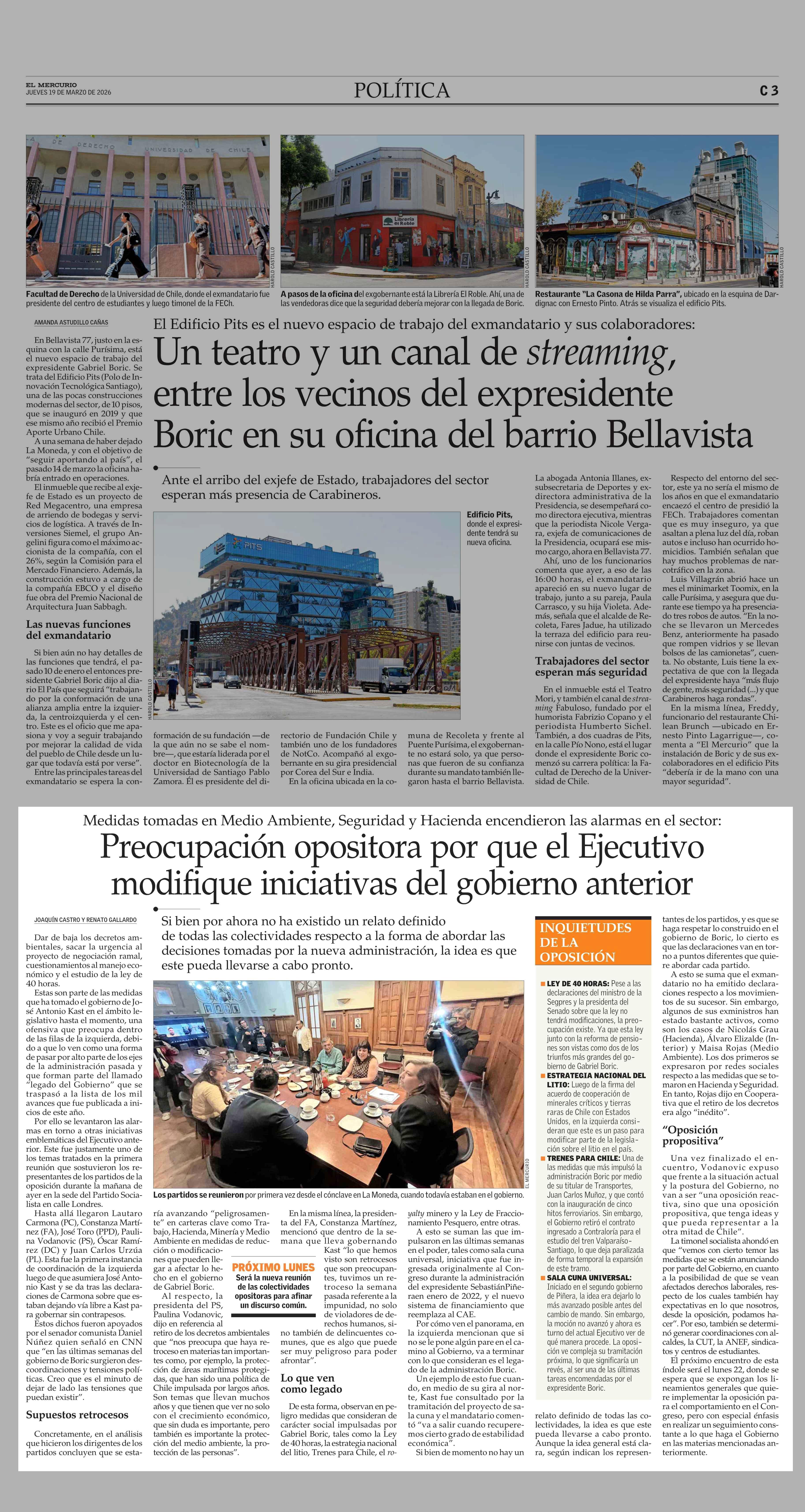 Preocupación opositora por que el Ejecutivo modifique iniciativas del gobierno anterior 19-03-2026 El Mercurio |