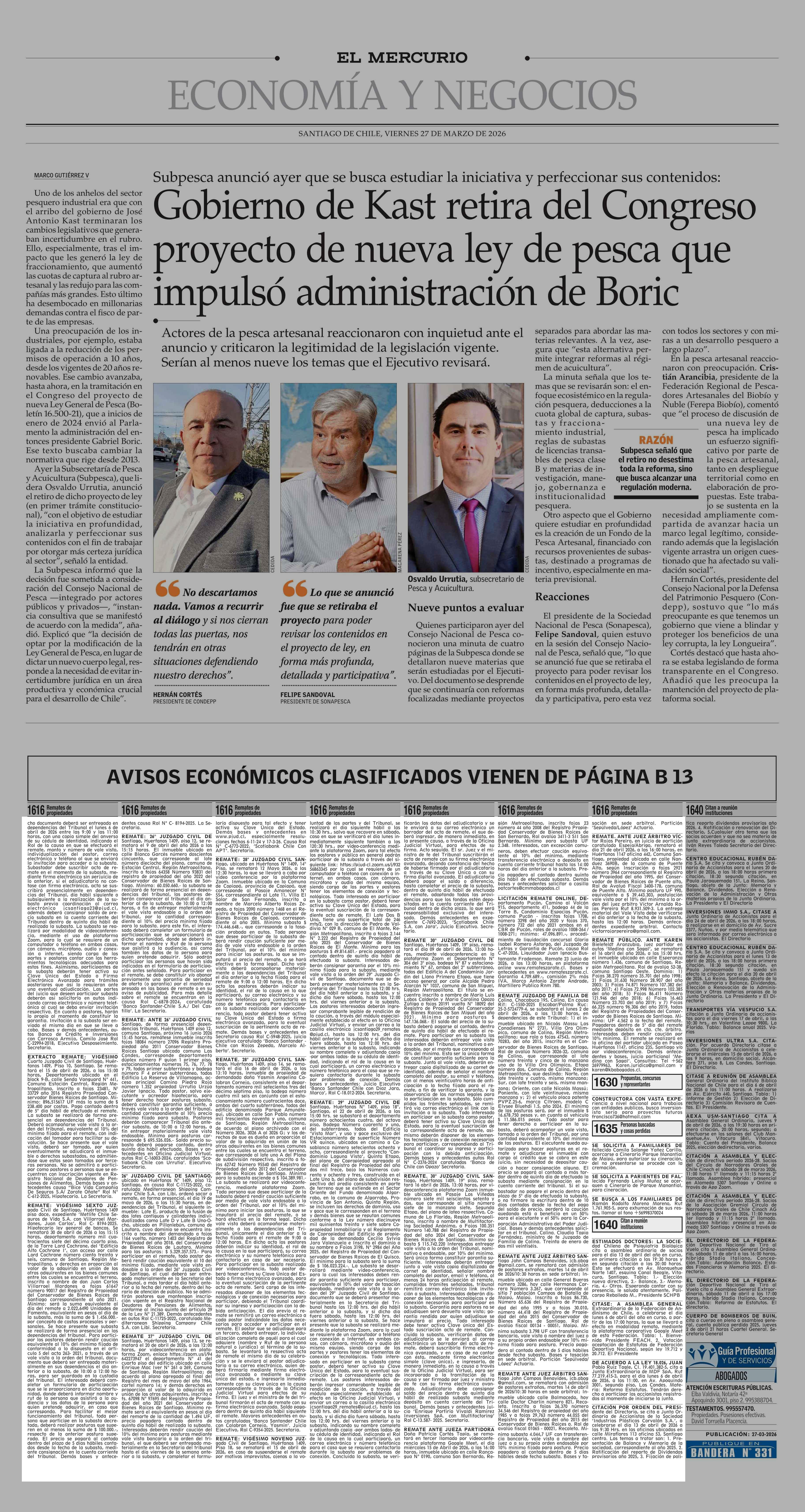 REMATES: 1616 Remates de propiedades 27-03-2026 El Mercurio |