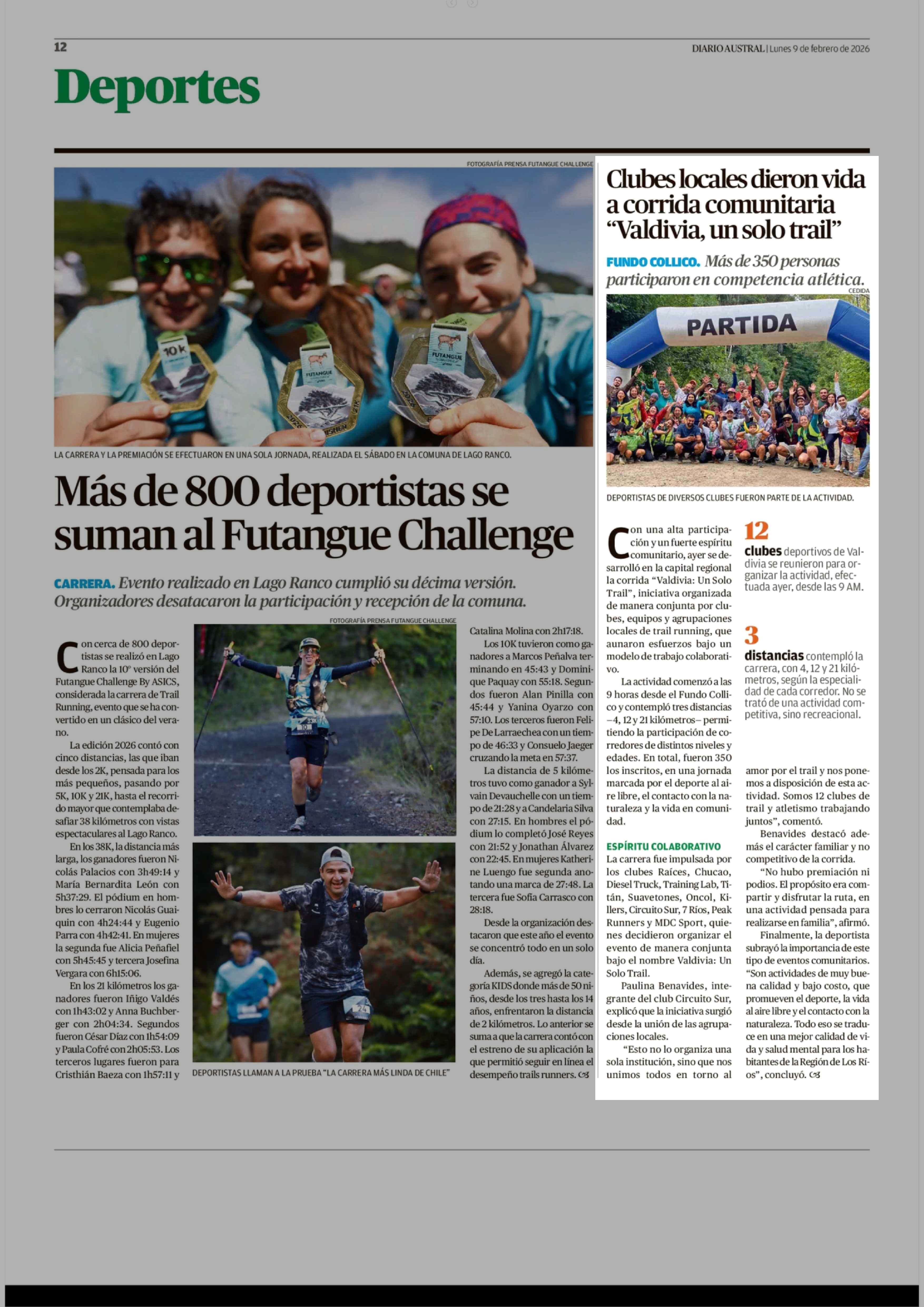 Título: Clubes locales dieron vida a corrida comunitaria "Valdivia, un solo trail"