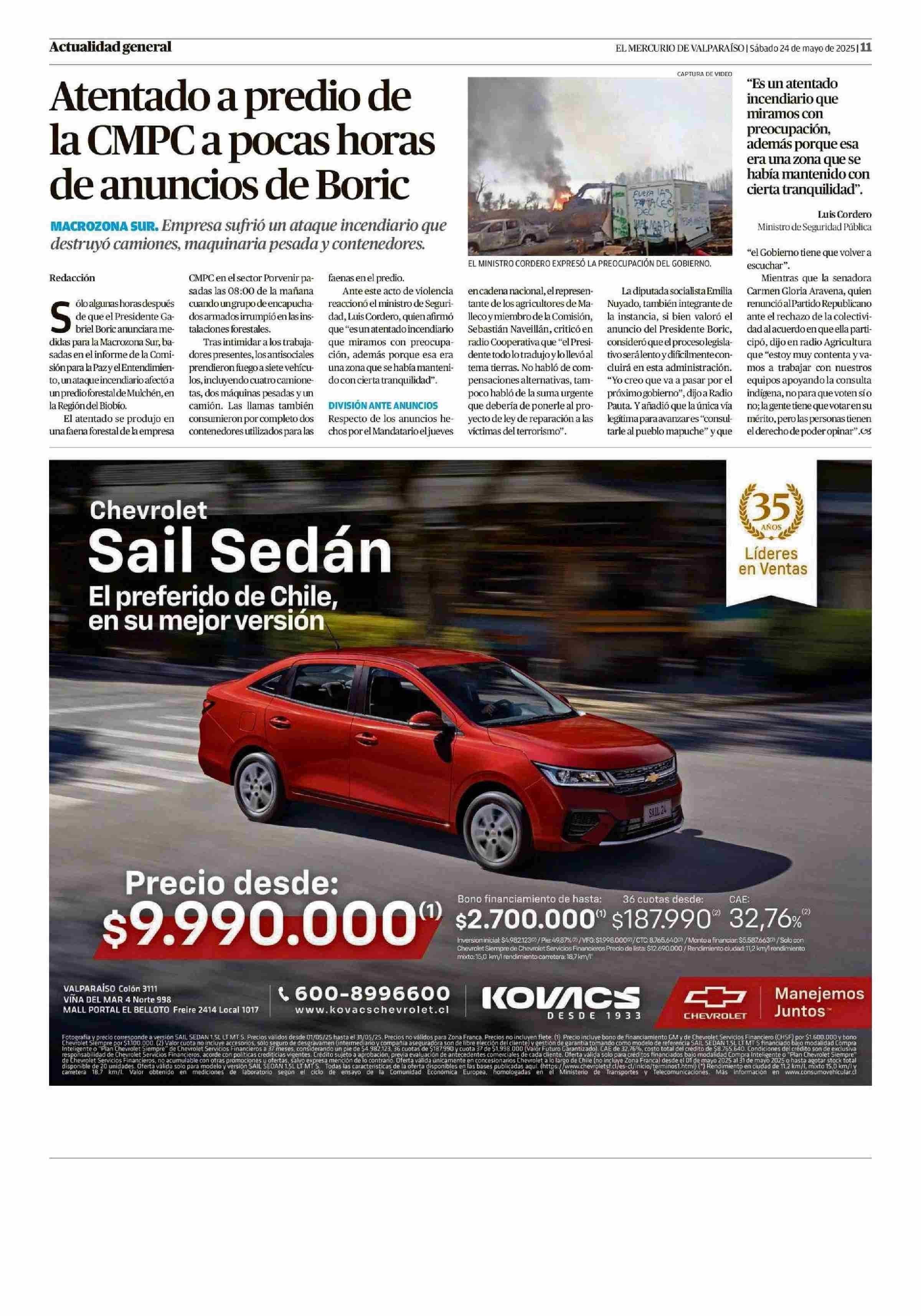 Título: Atentado a predio de la CMPC a pocas horas de anuncios de Boric