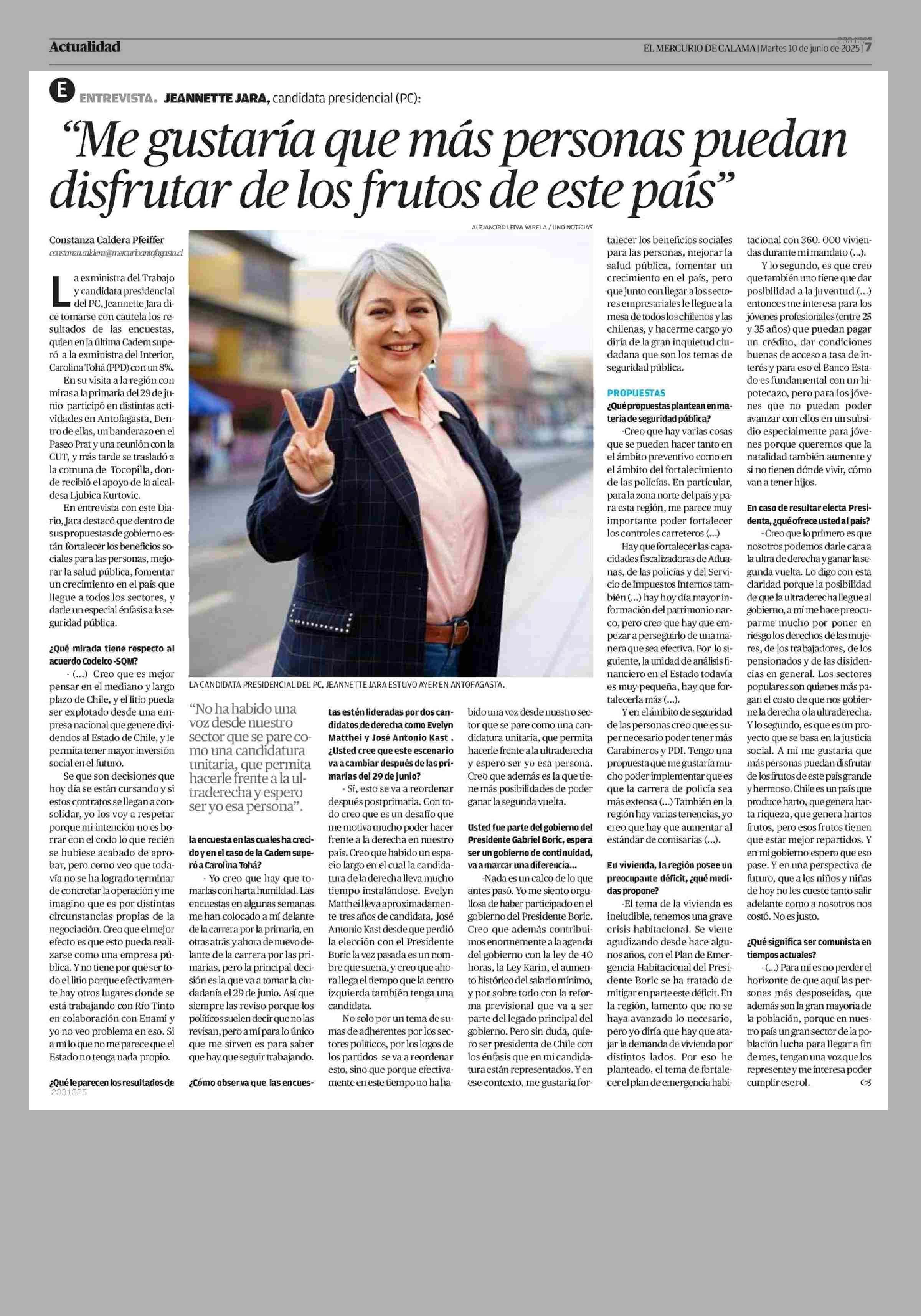“Me gustaría que más personas puedan disfrutar de los frutos de este país” 10-06-2025 El Mercurio de Calama |