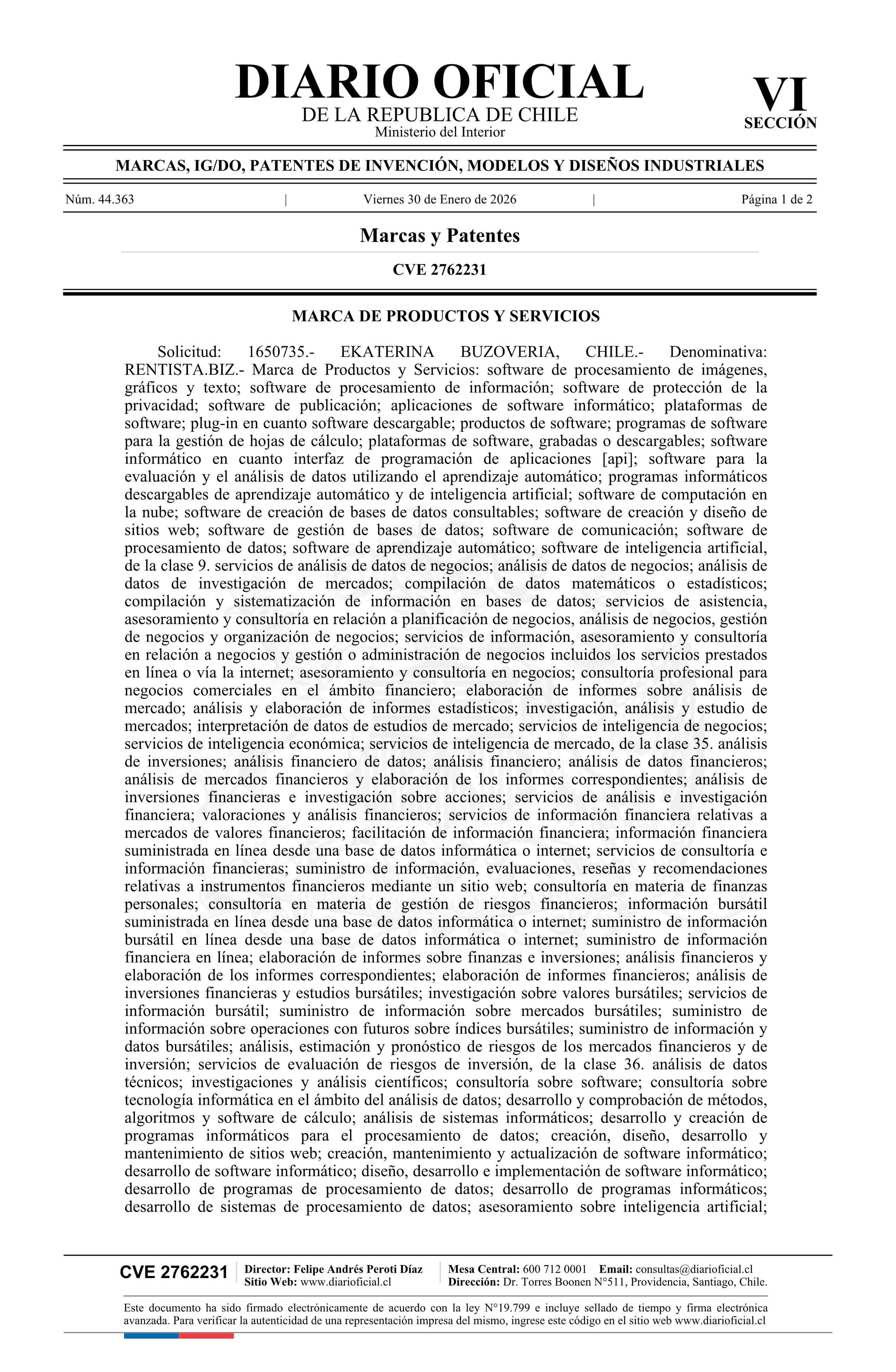 Solicitud número 1650735.- RENTISTA.BIZ 30-01-2026 Diario Oficial Edición Electrónica |