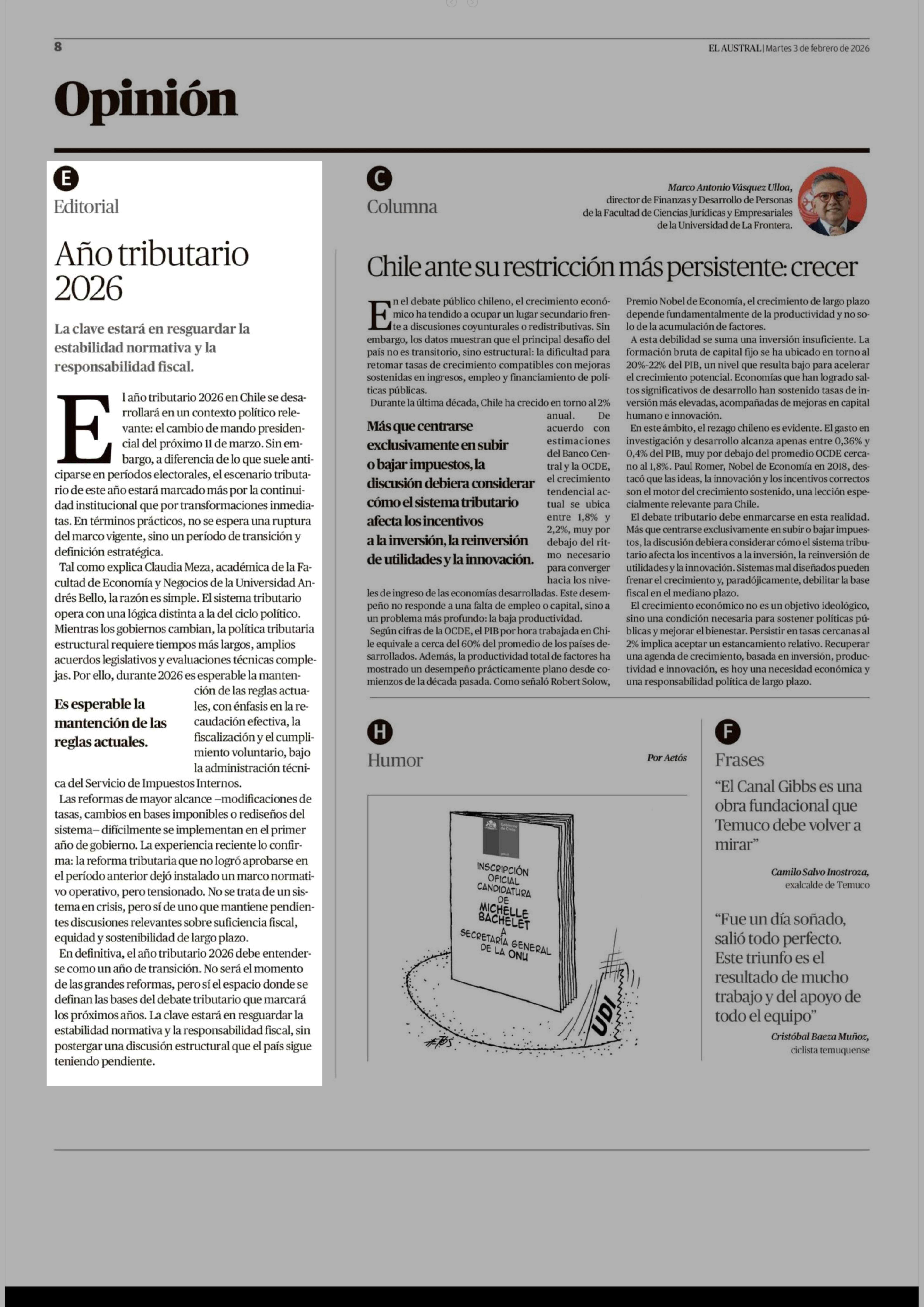 Fecha: 03-02-2026 Sector: Editorial Región: Región de la Araucanía