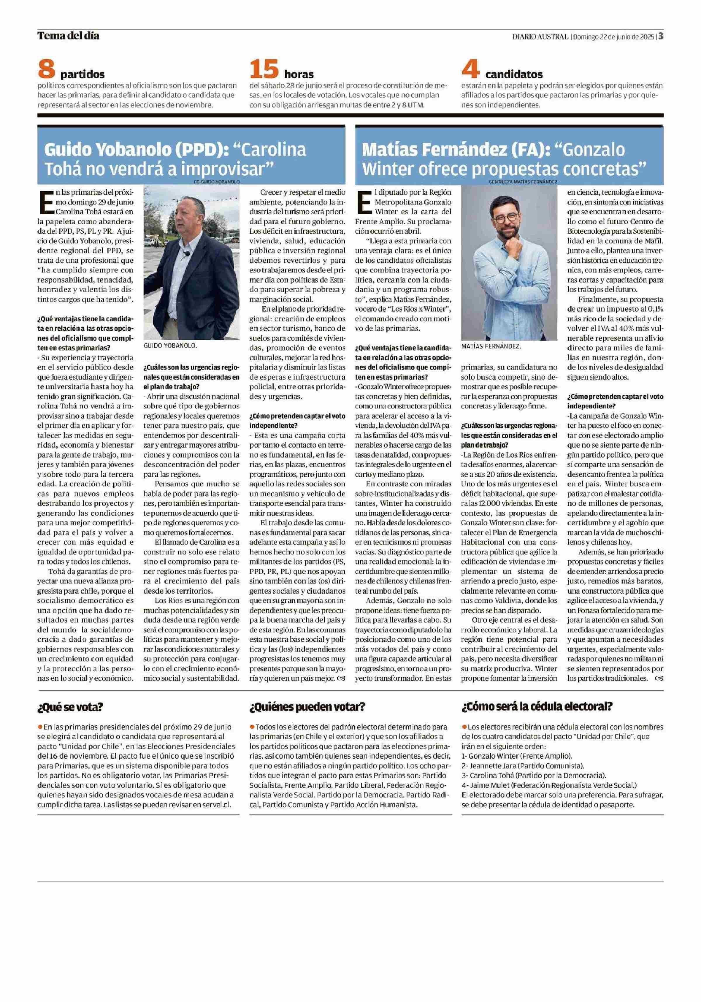 Matías Fernández (FA): "Gonzalo Winter ofrece propuestas concretas" 22-06-2025 Diario Austral Región de Los Ríos |