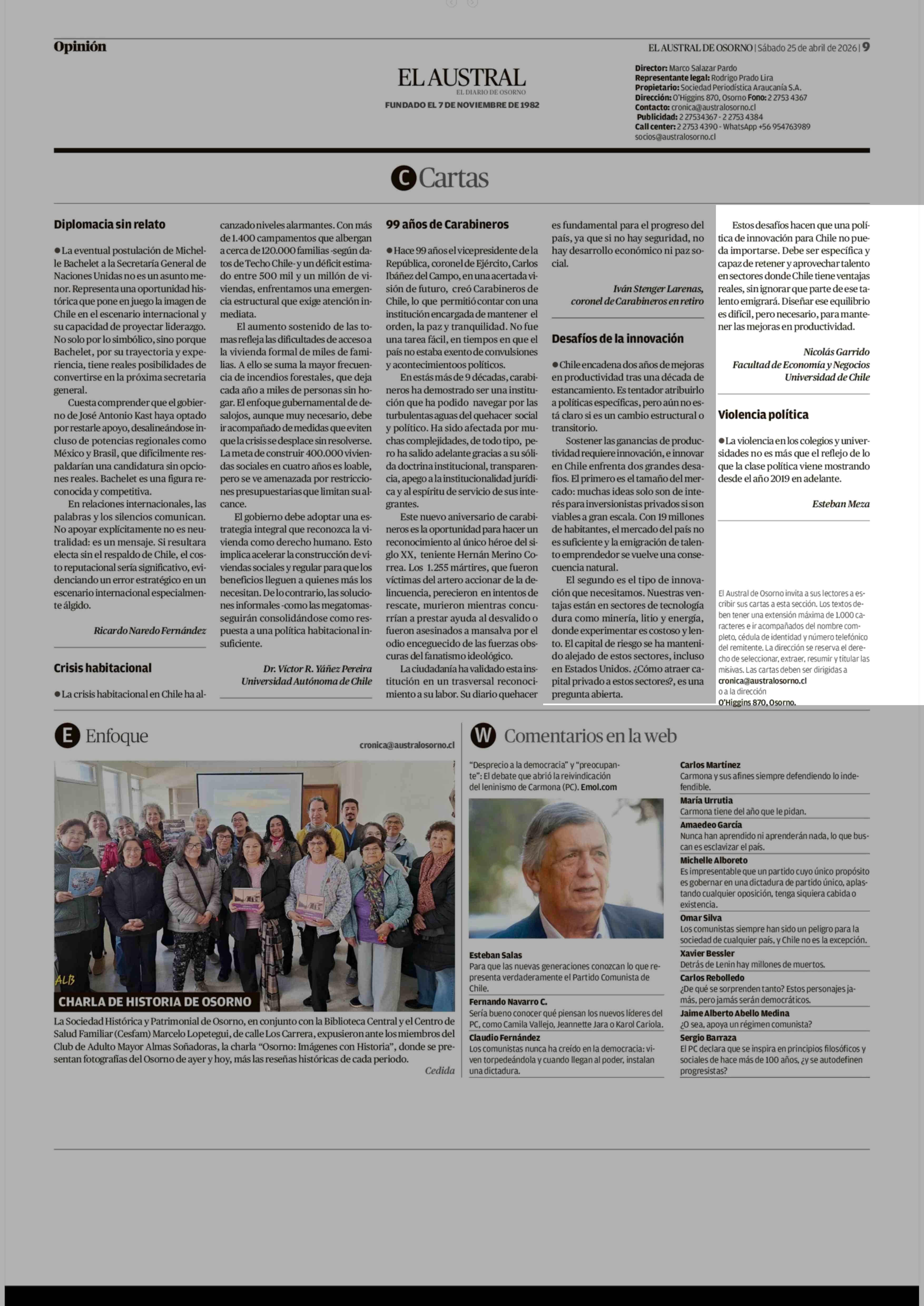 CARTAS: Desafíos de la innovación 25-04-2026 El Austral de Osorno |