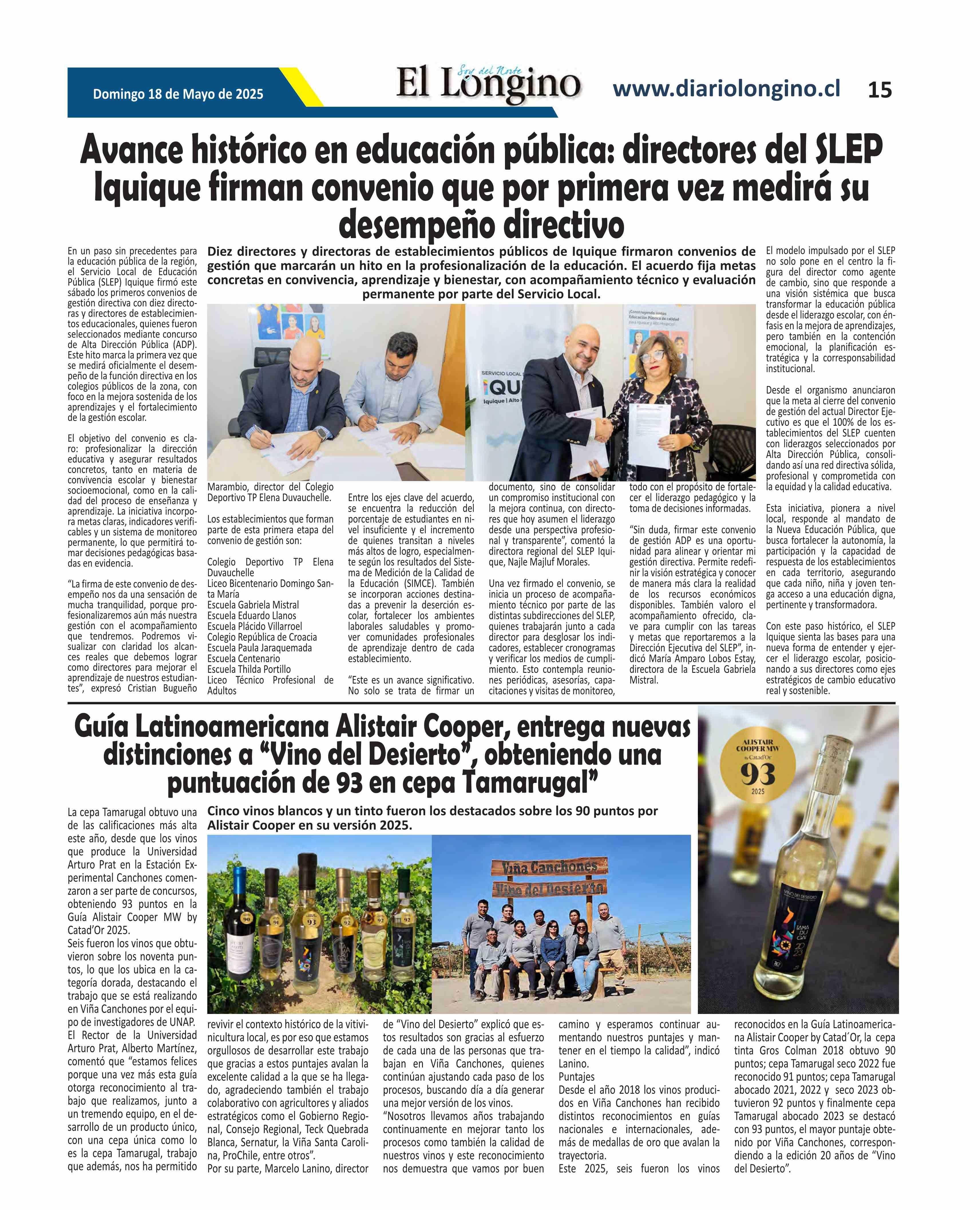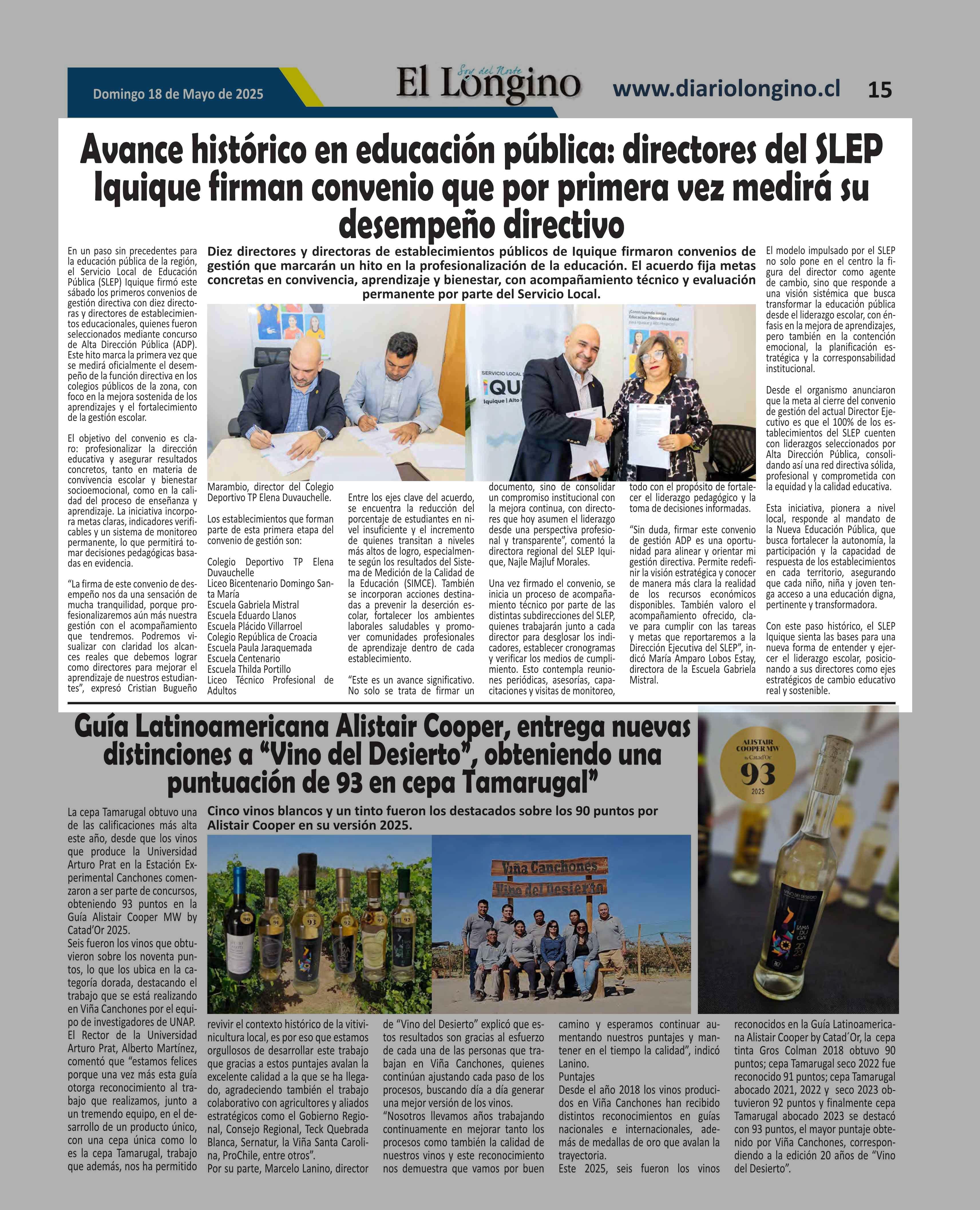 Avance histórico en educación pública: directores del SLEP Iquique firman convenio que por primera vez medirá su desempeño directivo 18-05-2025 El Longino |
