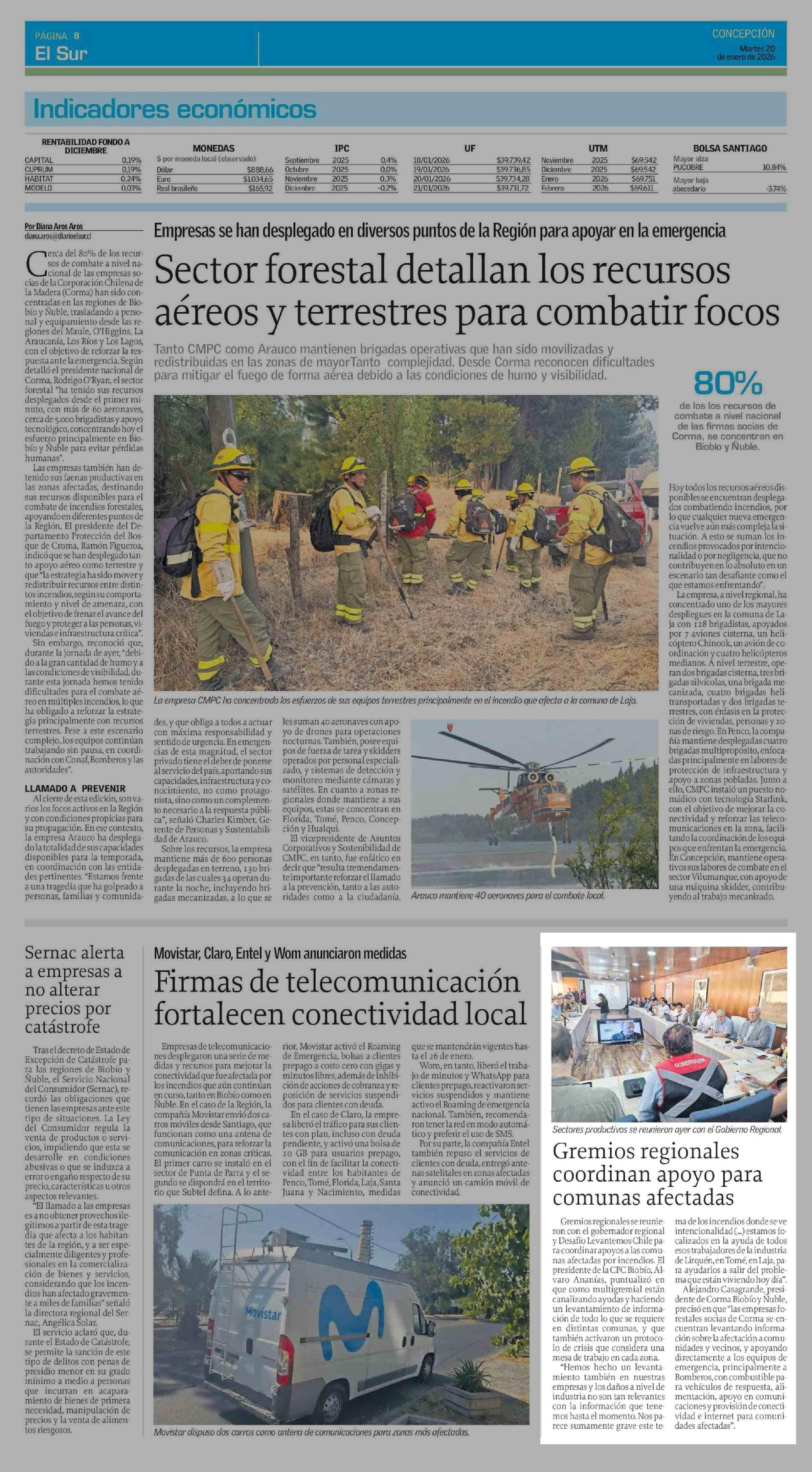 Gremios regionales coordinan apoyo para comunas afectadas 20-01-2026 El Sur |