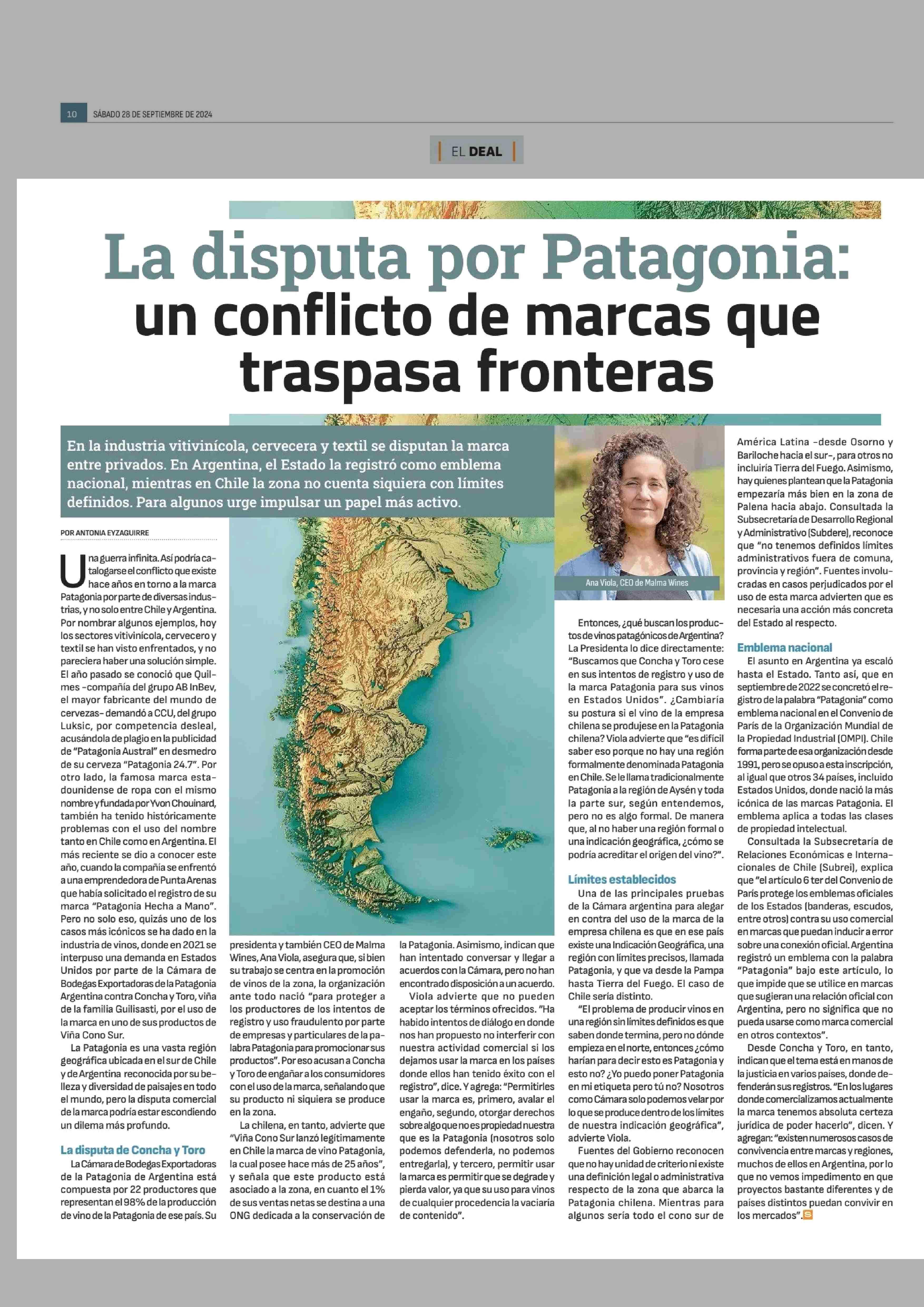 La disputa por Patagonia: un conflicto de marcas que traspasa fronteras 28-09-2024 Diario Financiero |