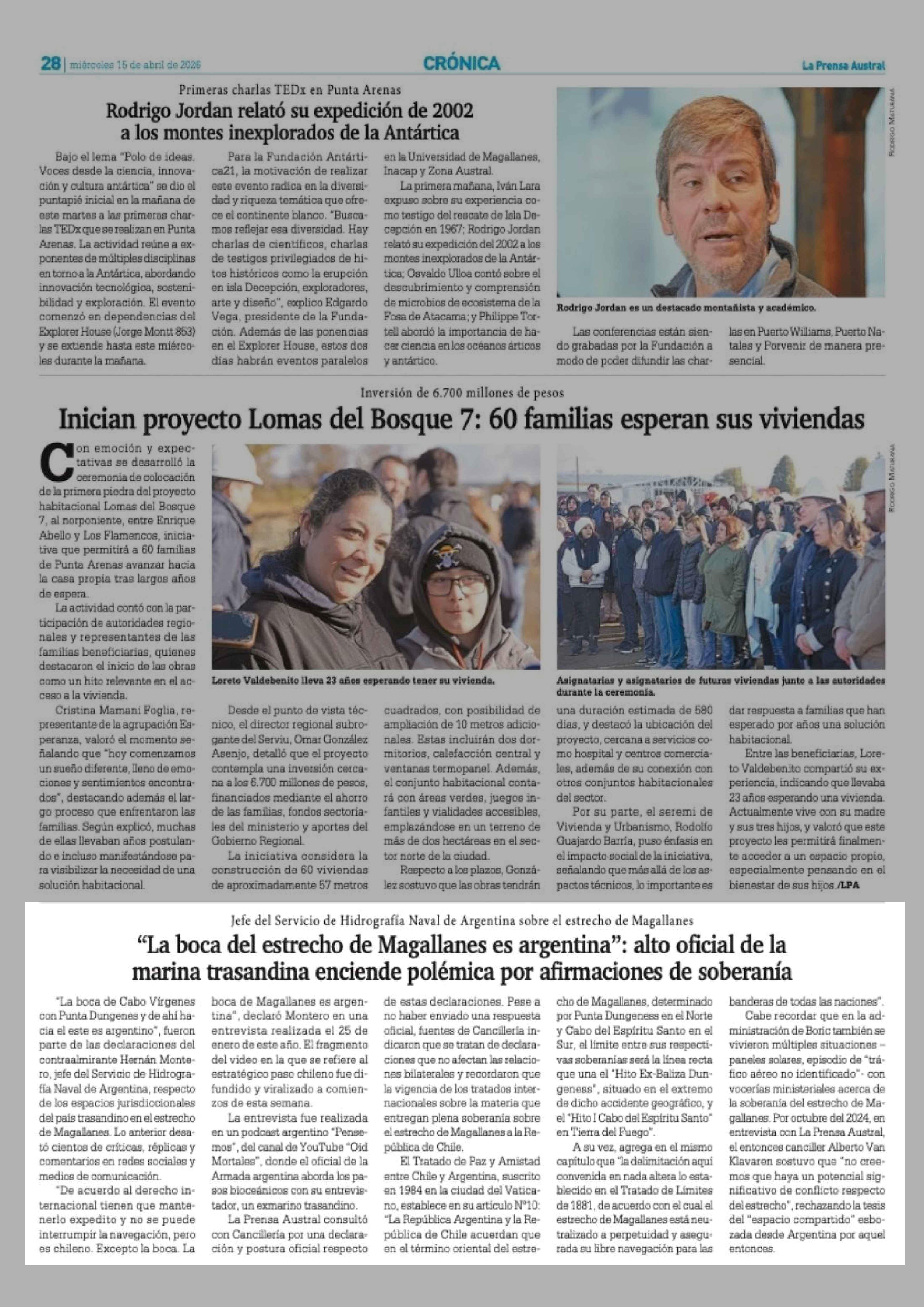 Fecha: 15-04-2026 Sector: Noticia general Región: Región de Magallanes y de la Antártica Chilena