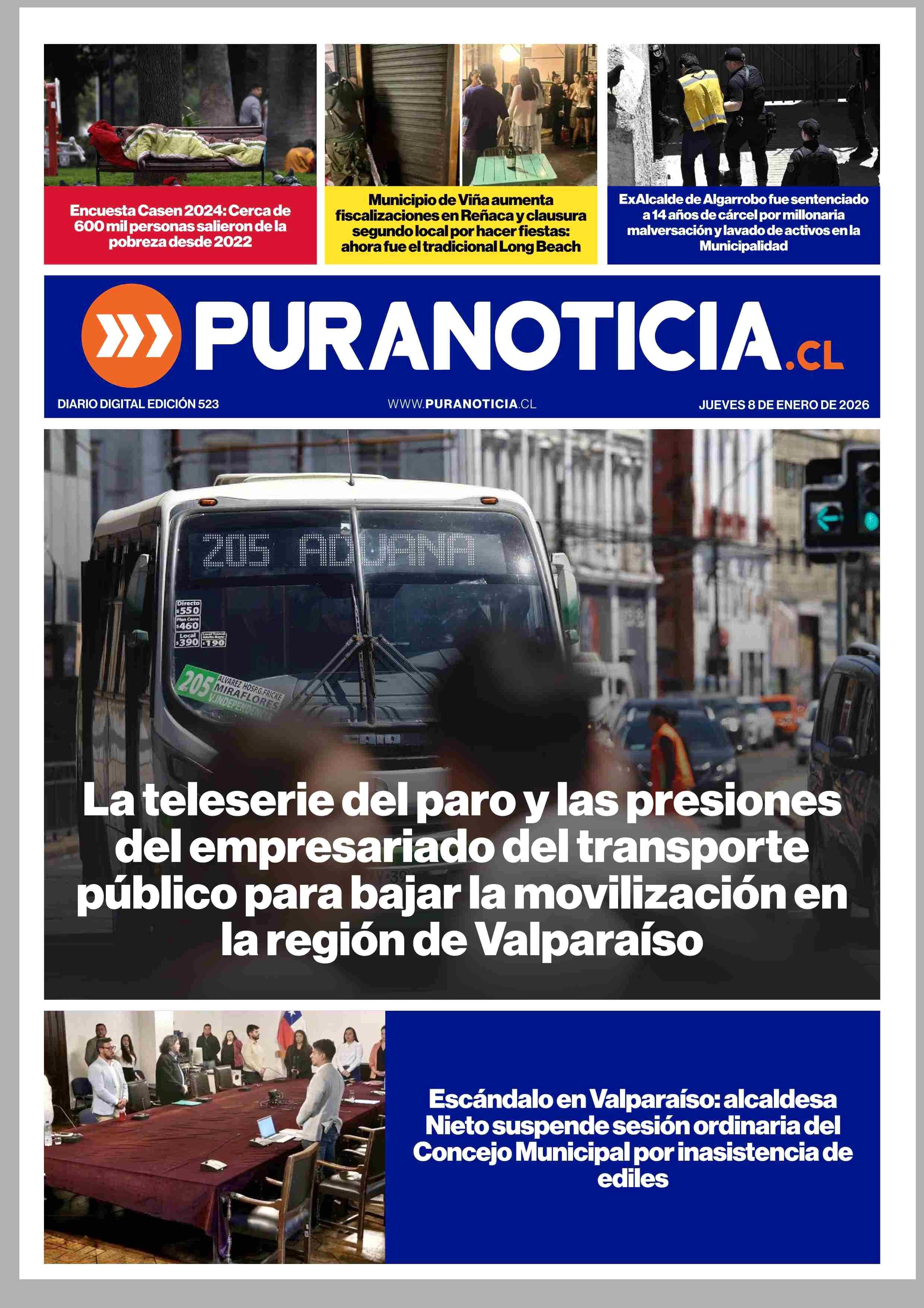 PORTADA PURANOTICIA - CHILE 08-01-2026 Puranoticia.cl |