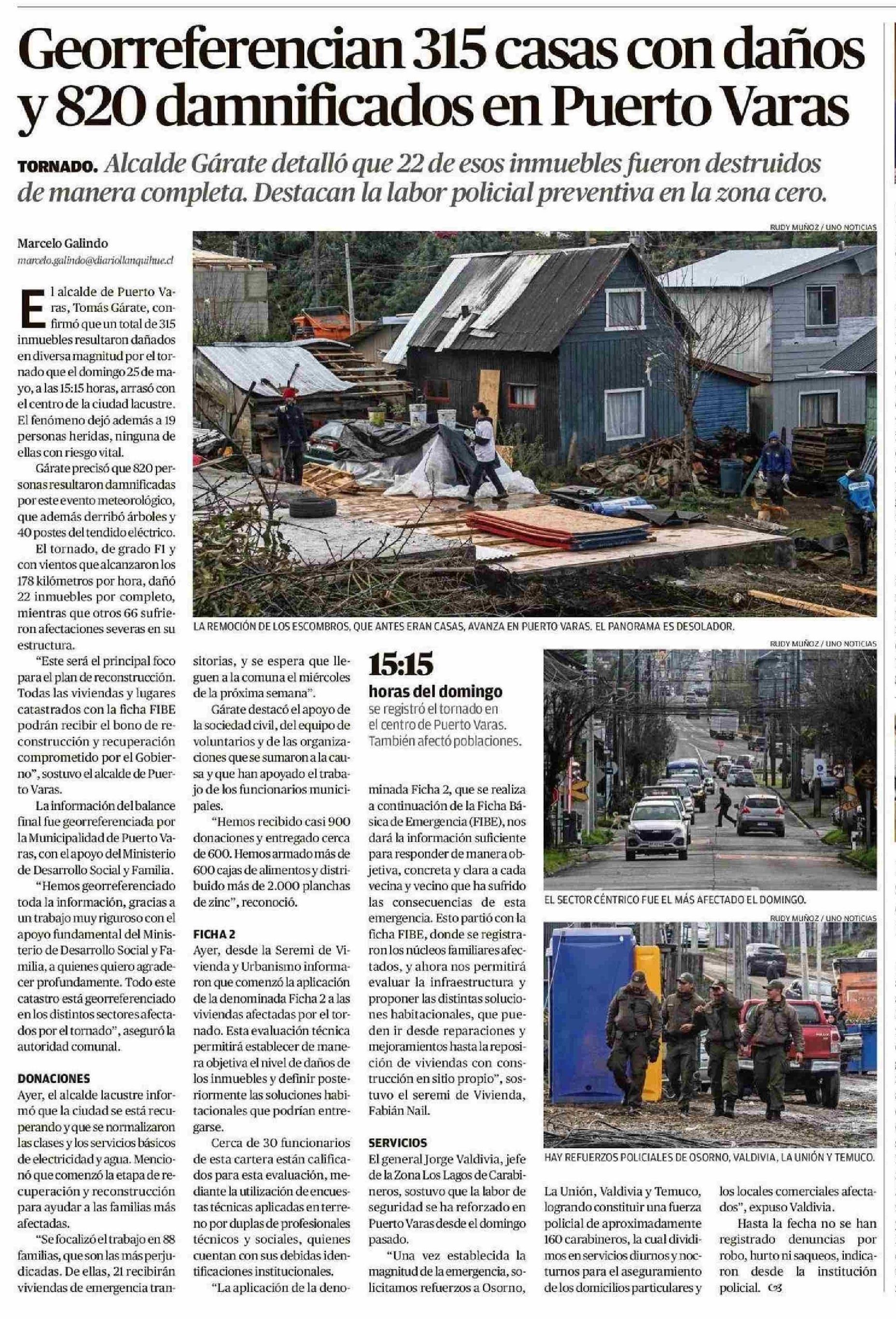 | Título: | Georreferencian 315 casas con daños y 820 damnificados en Puerto Varas |