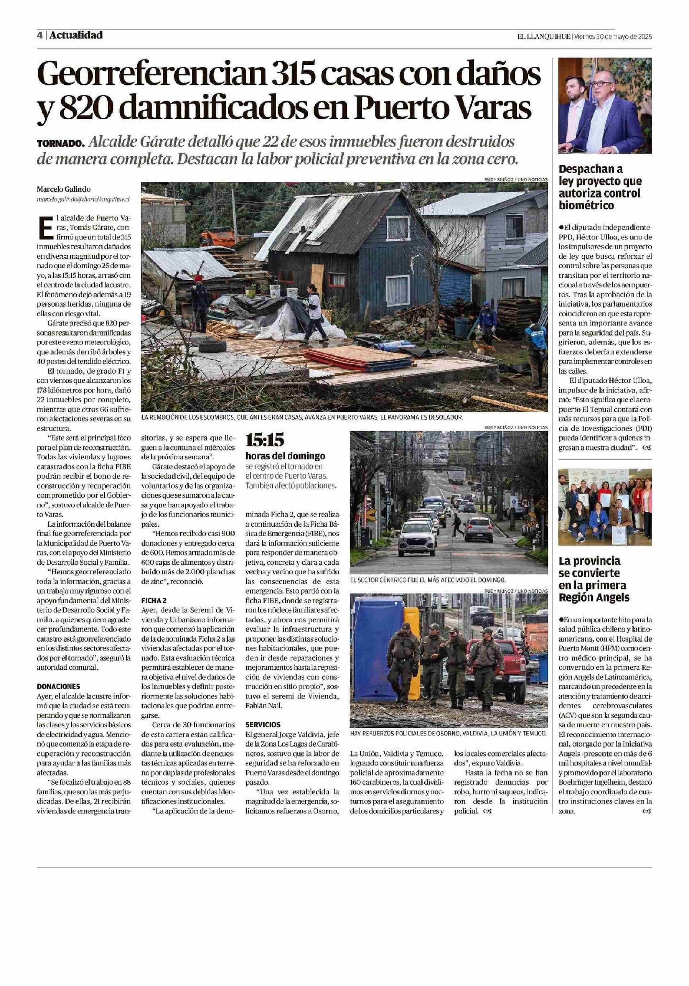 Georreferencian 315 casas con daños y 820 damnificados en Puerto Varas 30-05-2025 El Llanquihue |