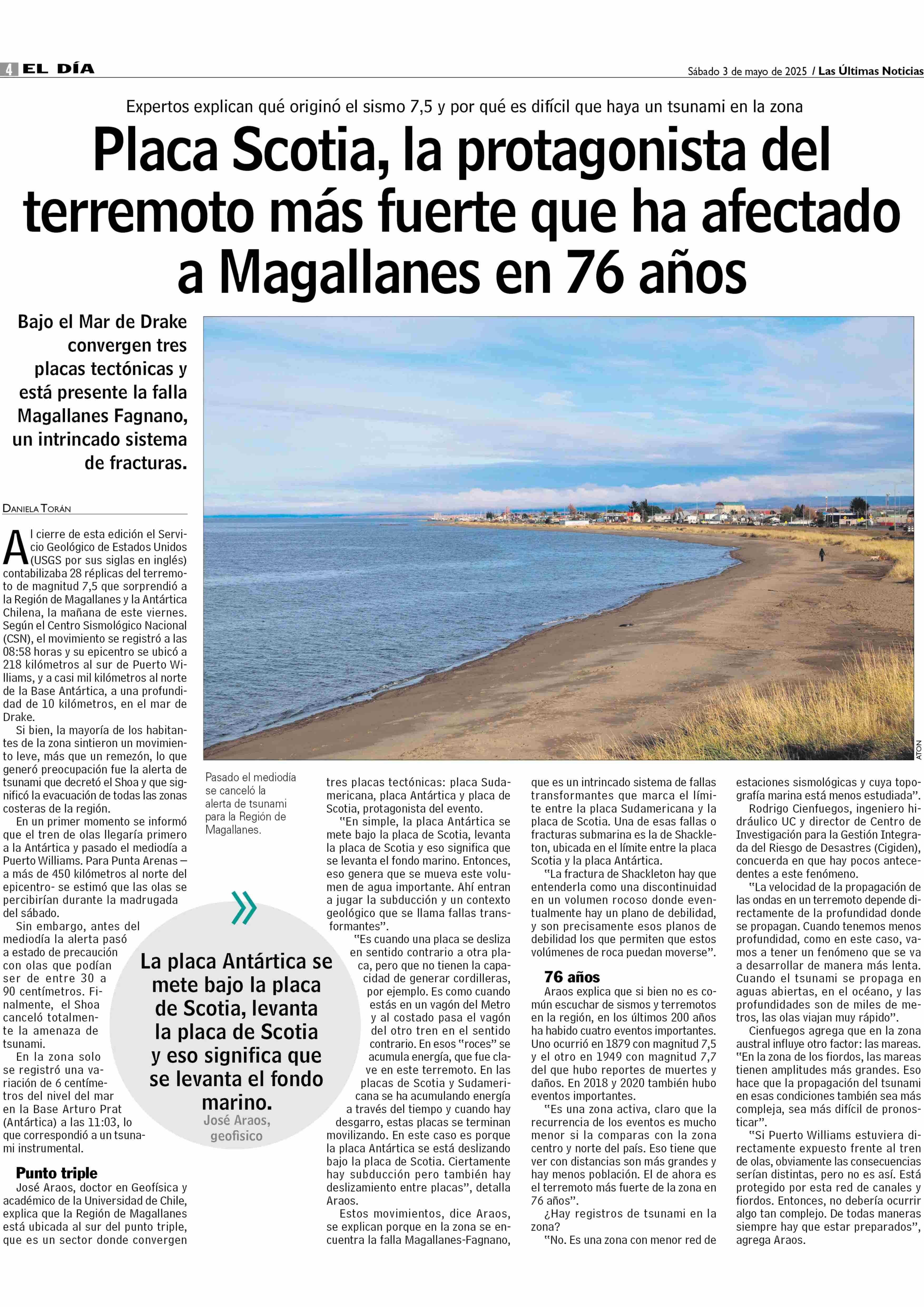 | Título: | Placa Scotia, la protagonista del terremoto más fuerte que ha afectado a Magallanes en 76 años |