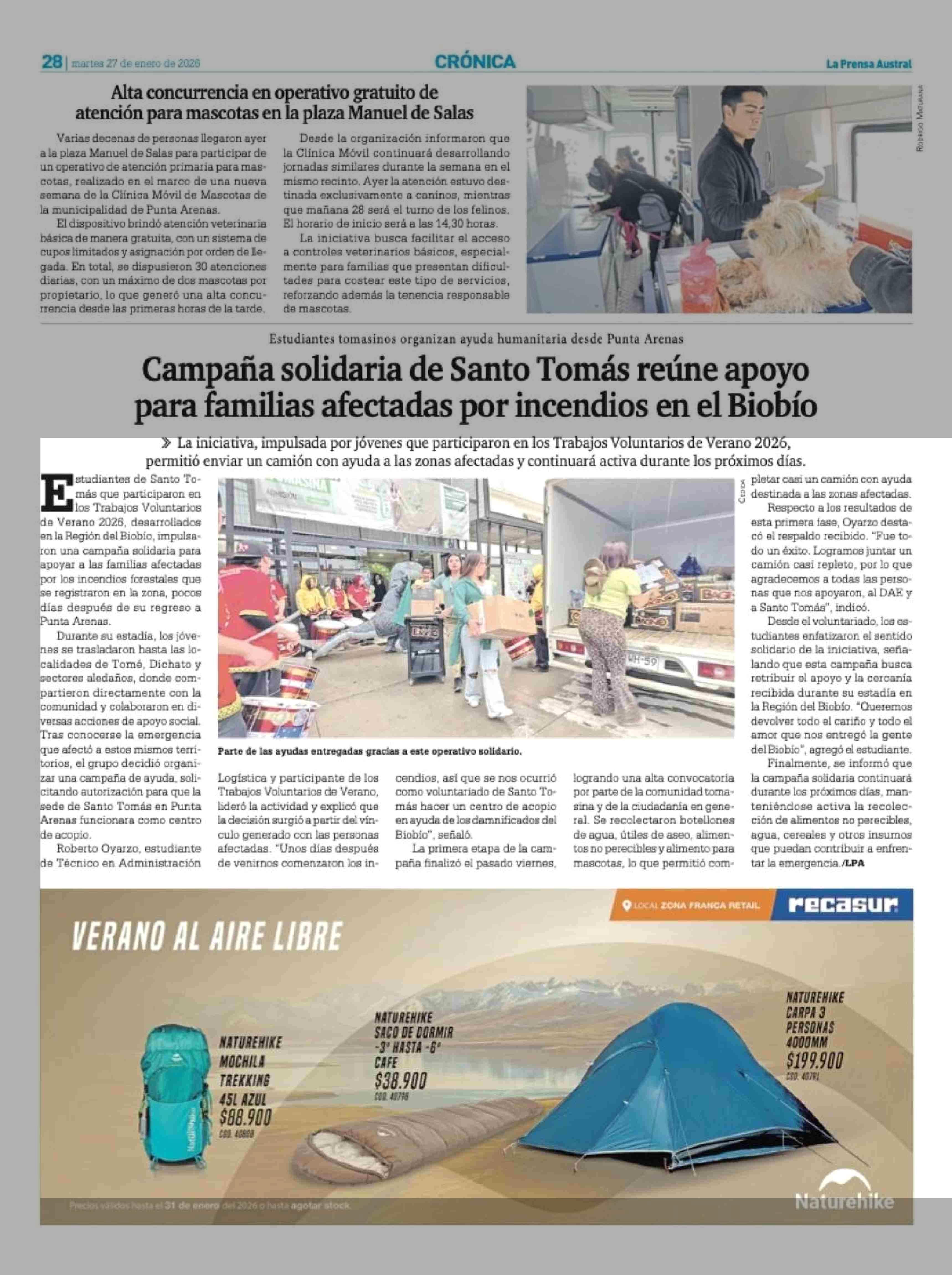 Título: Campaña solidaria de Santo Tomás reúne apoyo para familias afectadas por incendios en el Biobío