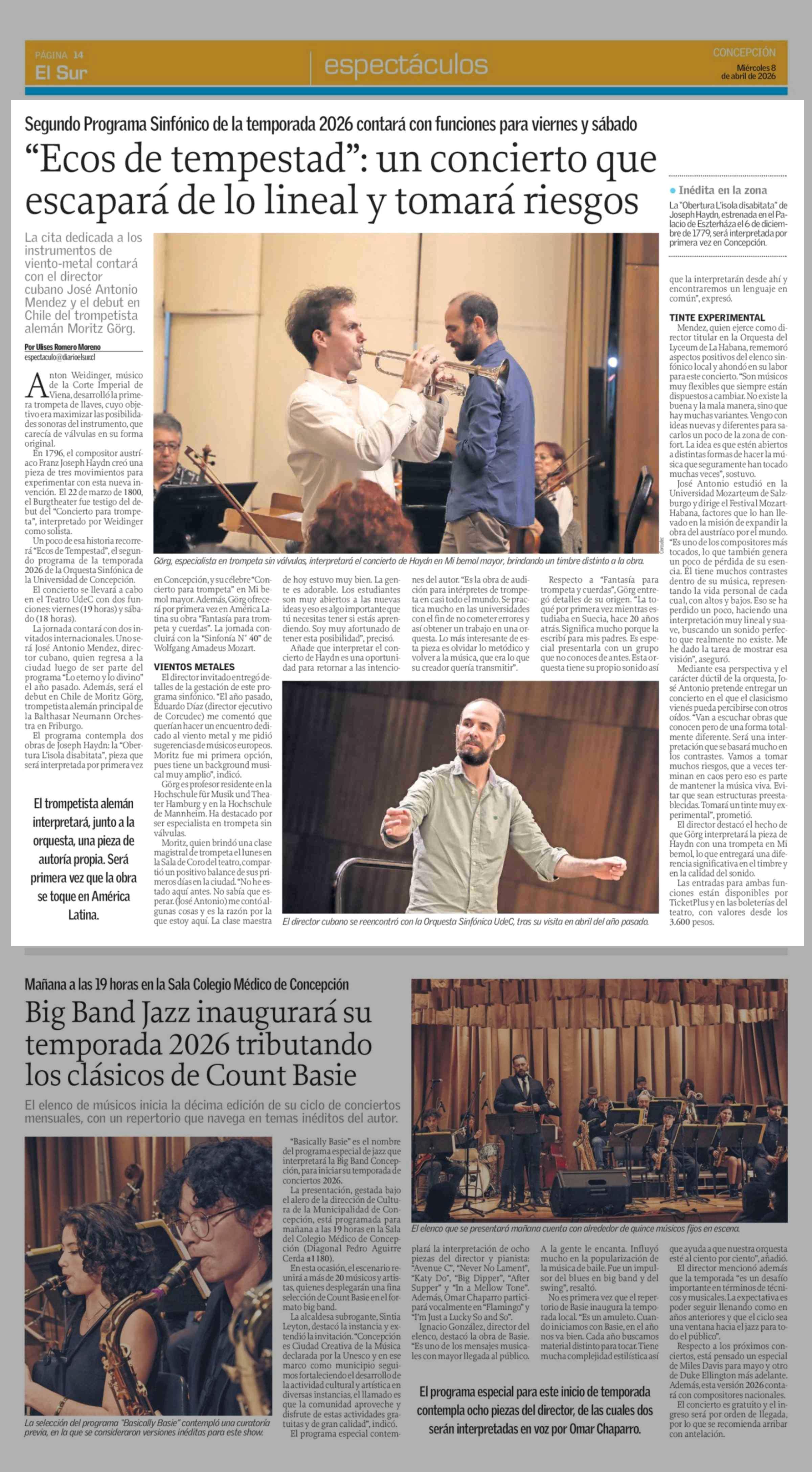"Ecos de tempestad": un concierto que escapará de lo lineal y tomará riesgos 08-04-2026 El Sur |