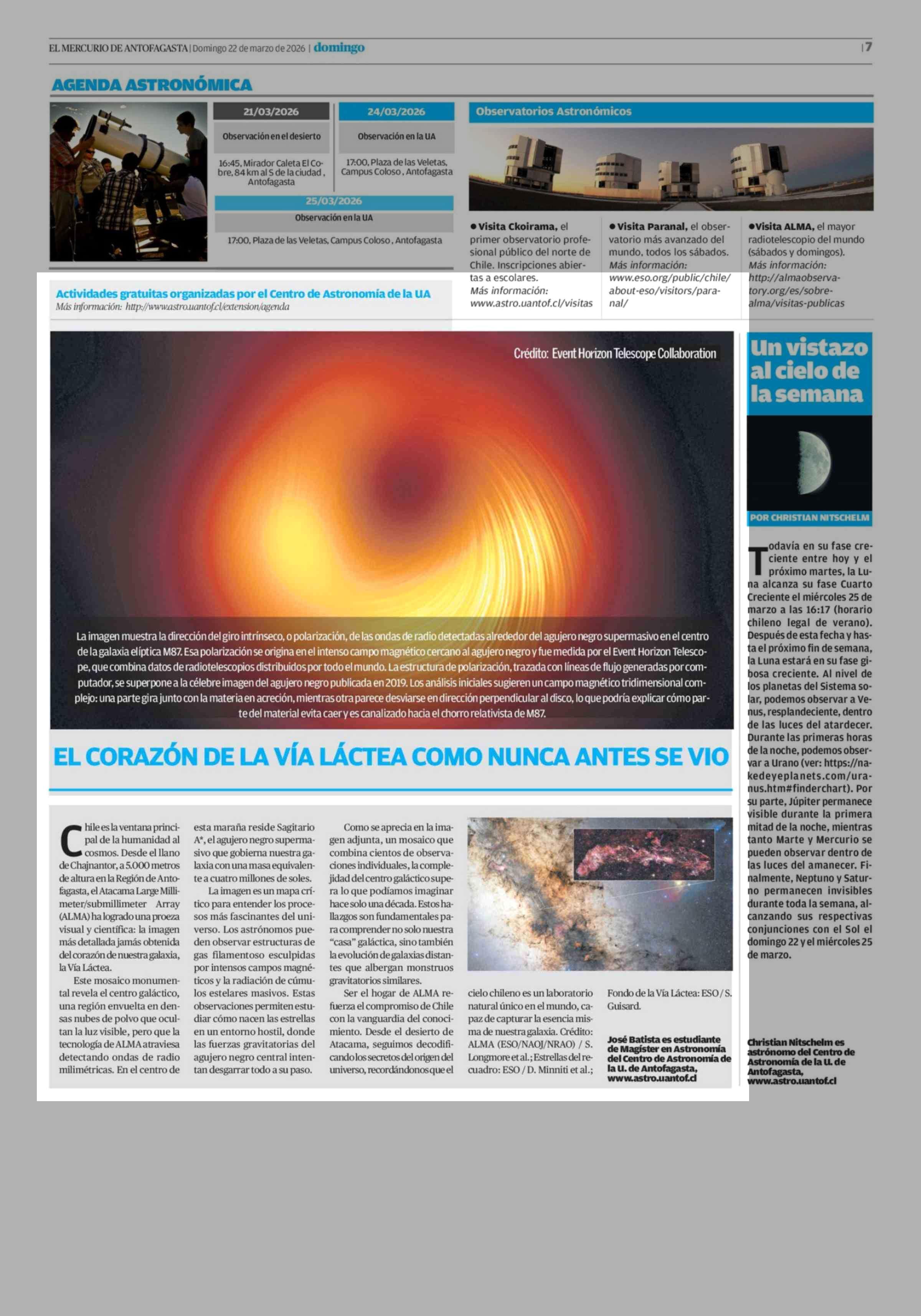 EL CORAZÓN DE LA VÍA LÁCTEA COMO NUNCA ANTES SE VIO 22-03-2026 El Mercurio de Antofagasta |