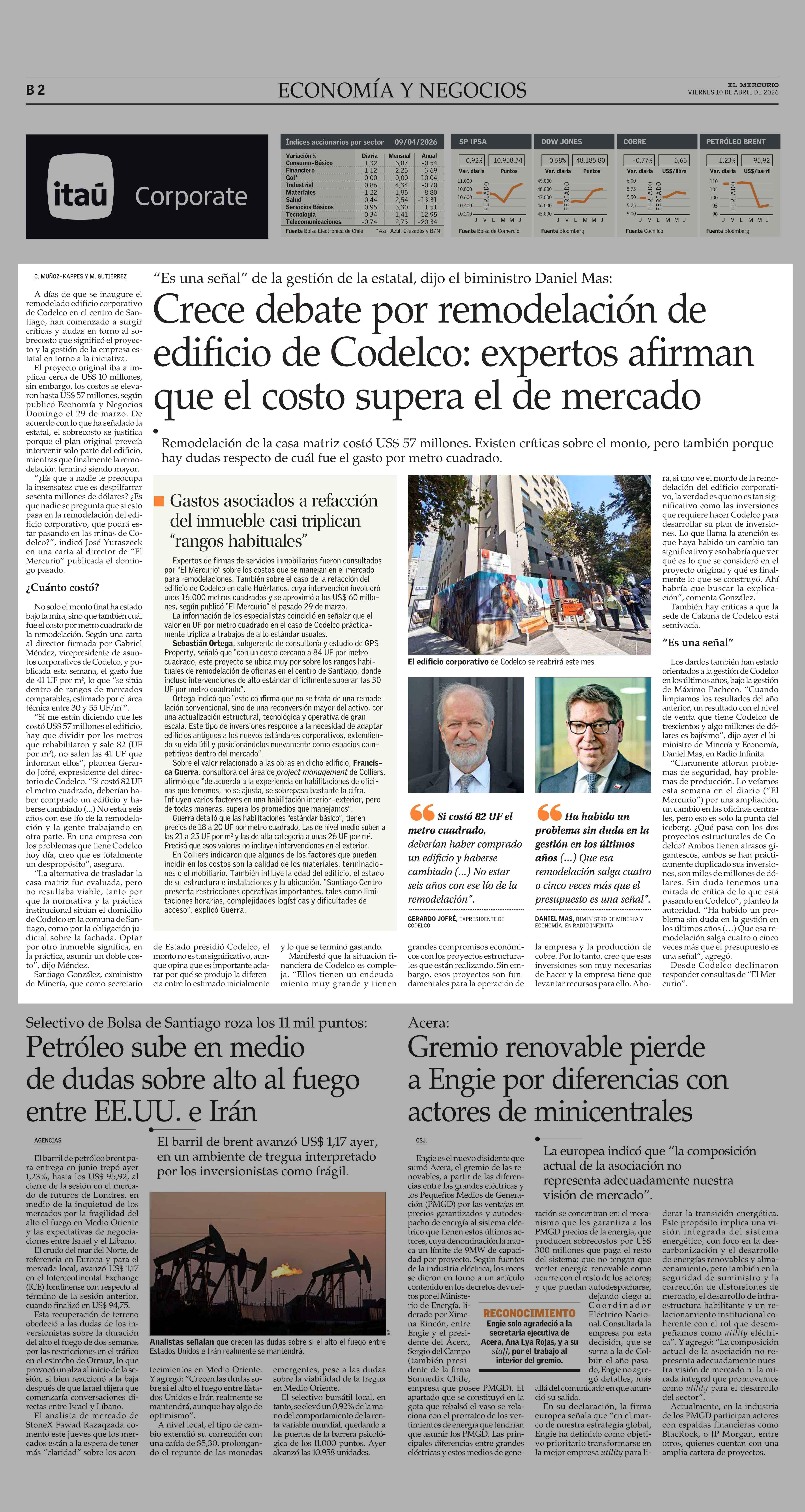 Título: Crece debate por remodelación de edificio de Codelco: expertos afirman que el costo supera el de mercado