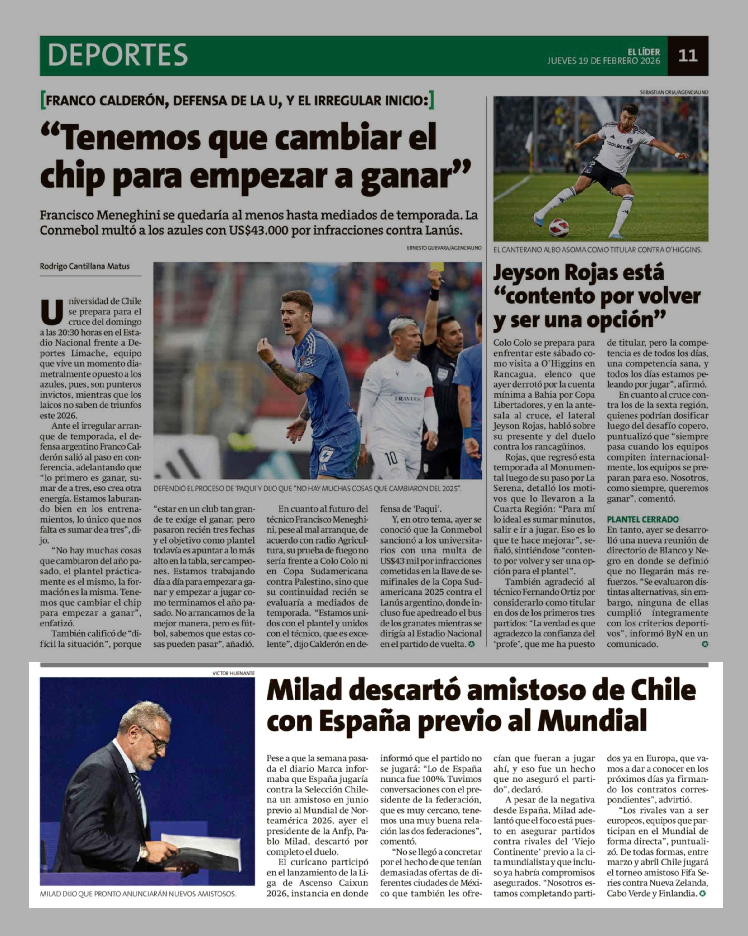 Título: Milad descartó amistoso de Chile con España previo al Mundial