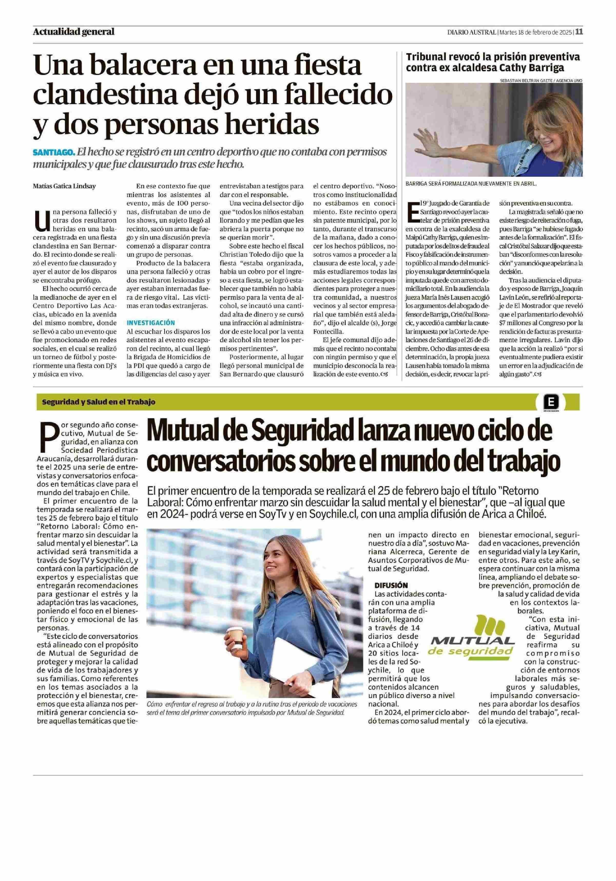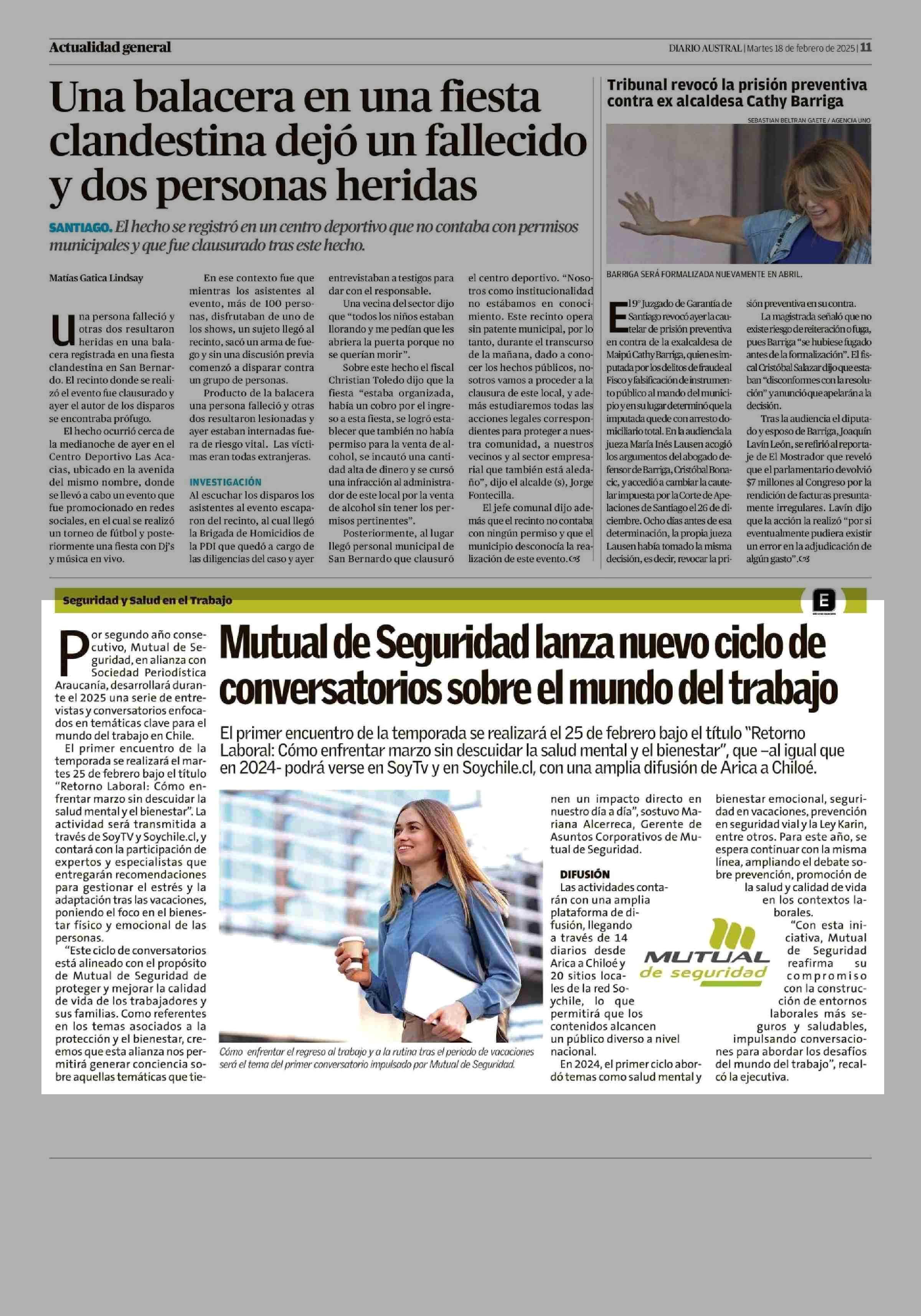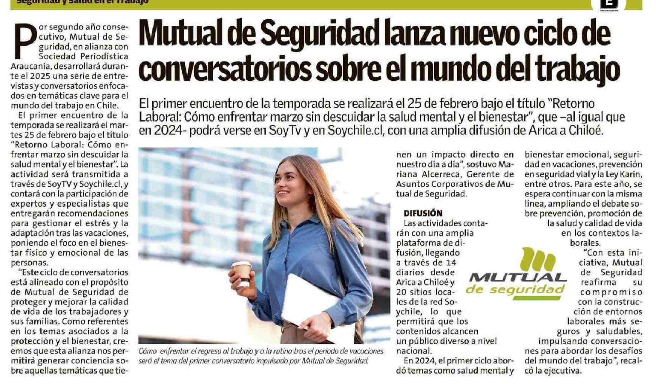 Mutual de Seguridad lanza nuevo ciclo de conversatorios sobre el mundo del trabajo 18-02-2025 Diario Austral Región de Los Ríos |