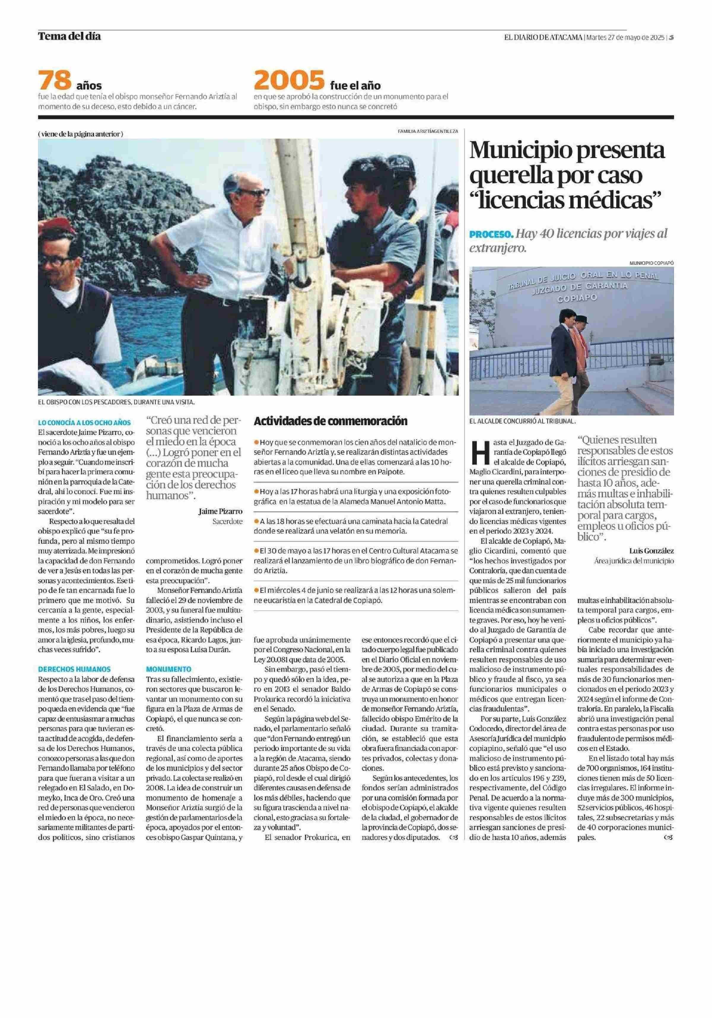 Municipio presenta querella por caso “licencias médicas” 27-05-2025 El Diario de Atacama |