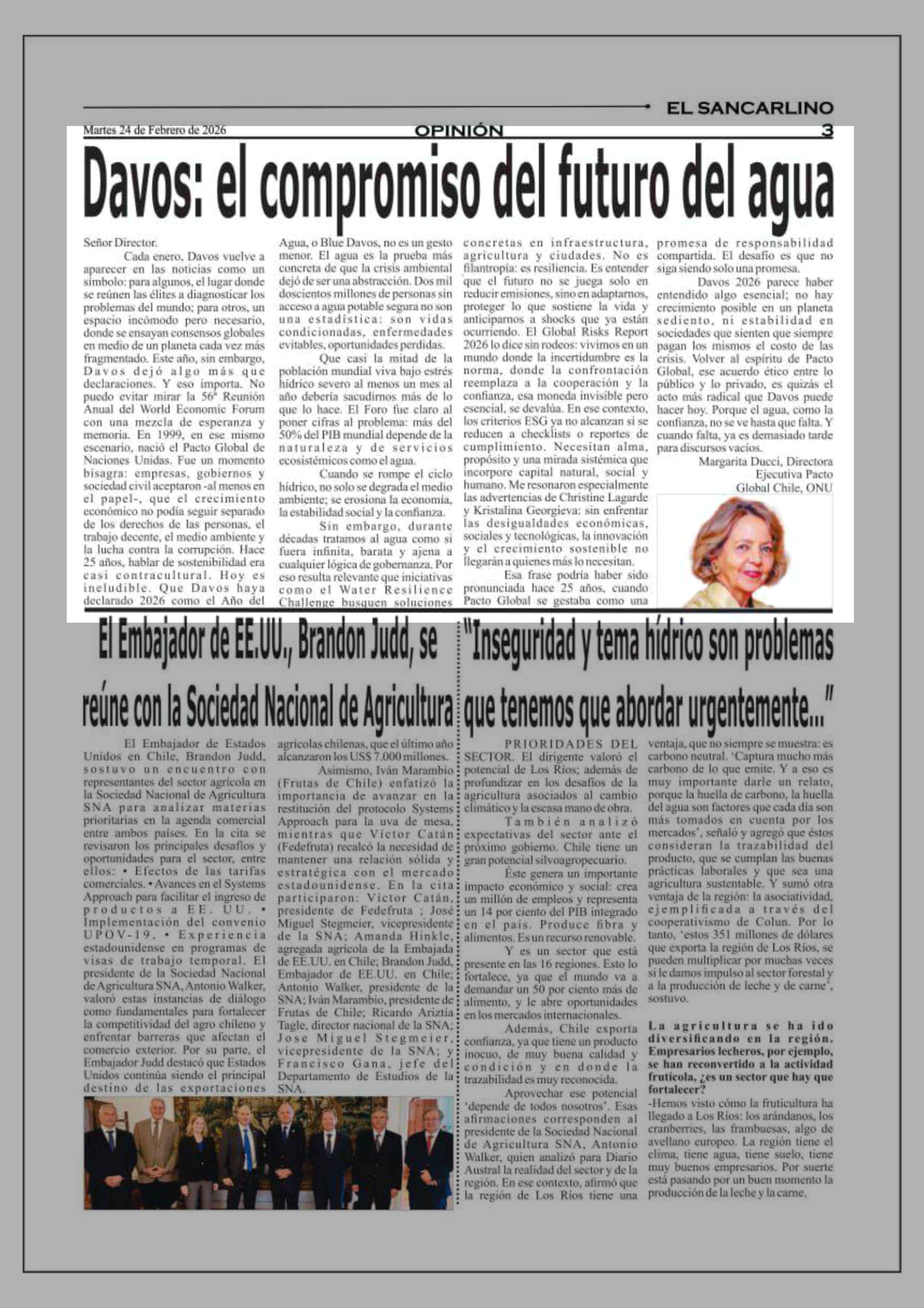 Columnas de Opinión: Davos: el compromiso del futuro del agua 24-02-2026 El Sancarlino |