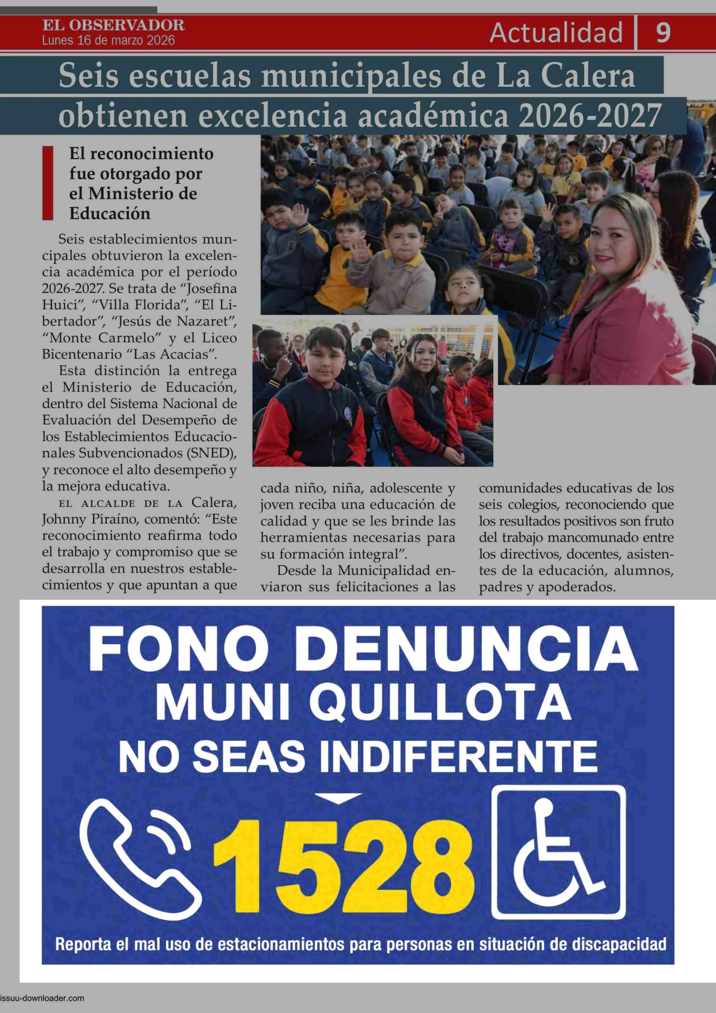 AVISO PUBLICITARIO: FONO DENUNCIA MUNI QUILLOTA NO SEAS INDIFERENTE 16-03-2026 El Observador Vespertino |