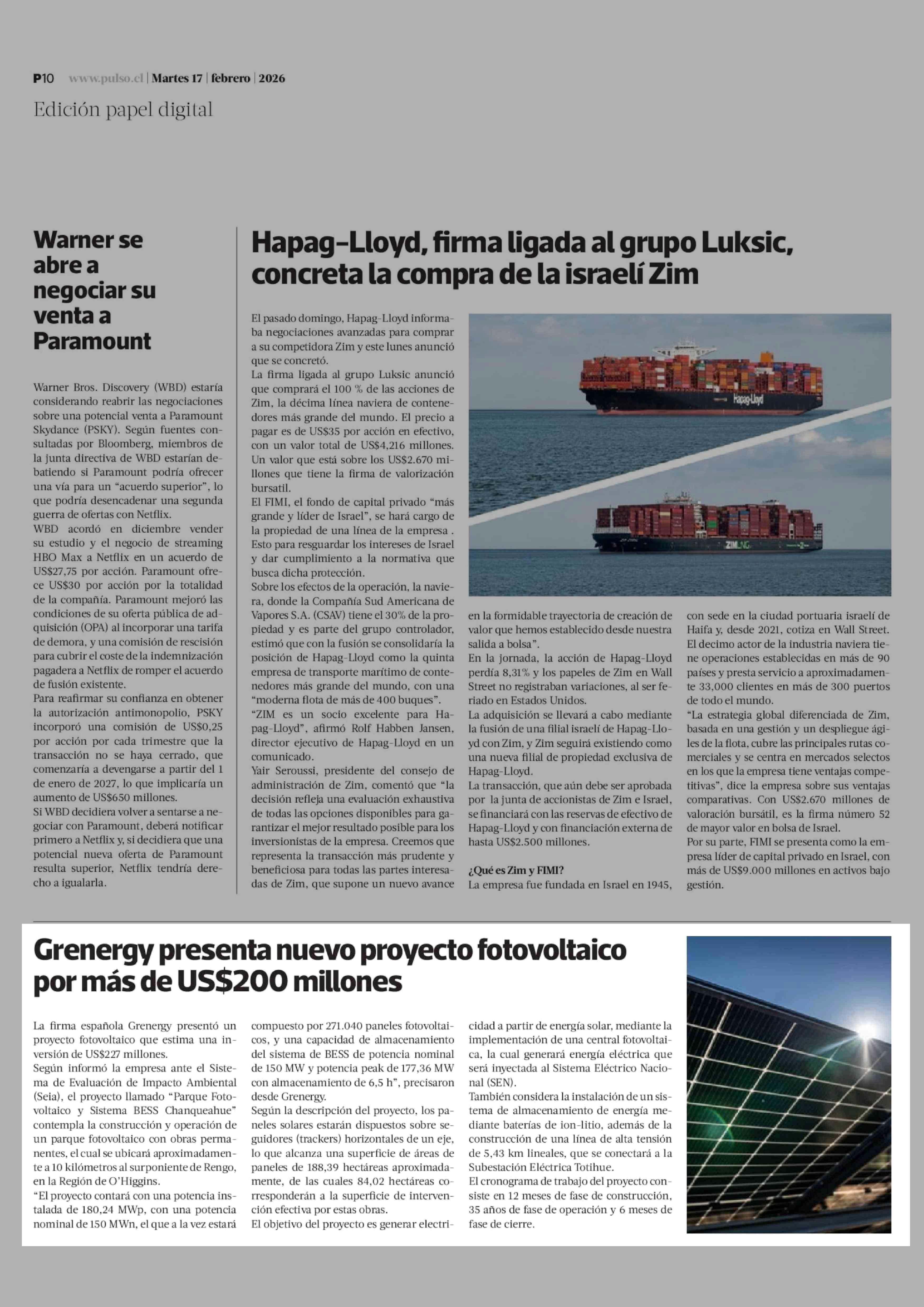 Fuente: La Tercera (La Tercera - Pulso) Página(s): 10