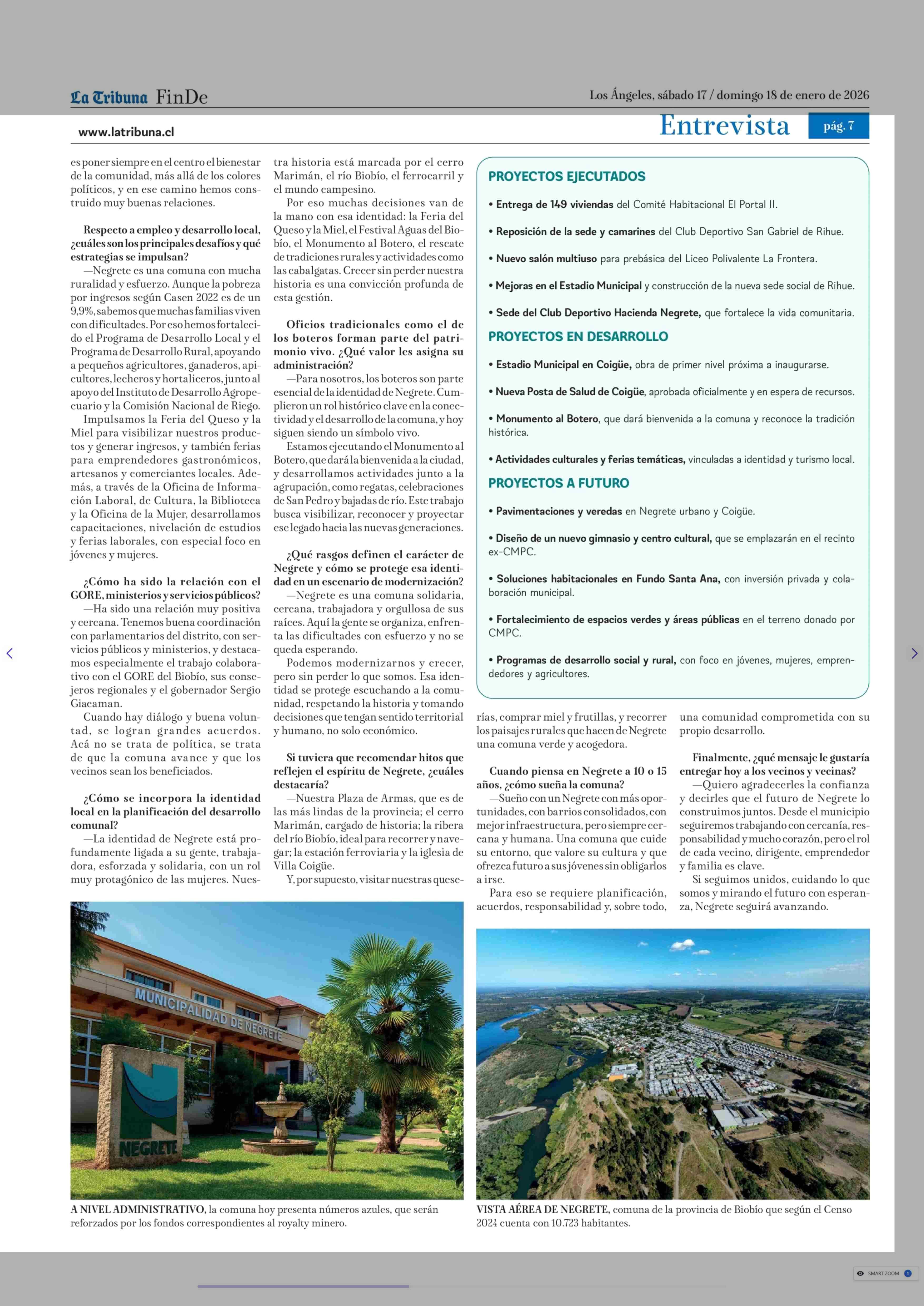 Alfredo Peña: "Queremos crecer sin perder la identidad y la historia de Negrete" 17-01-2026 La Tribuna |