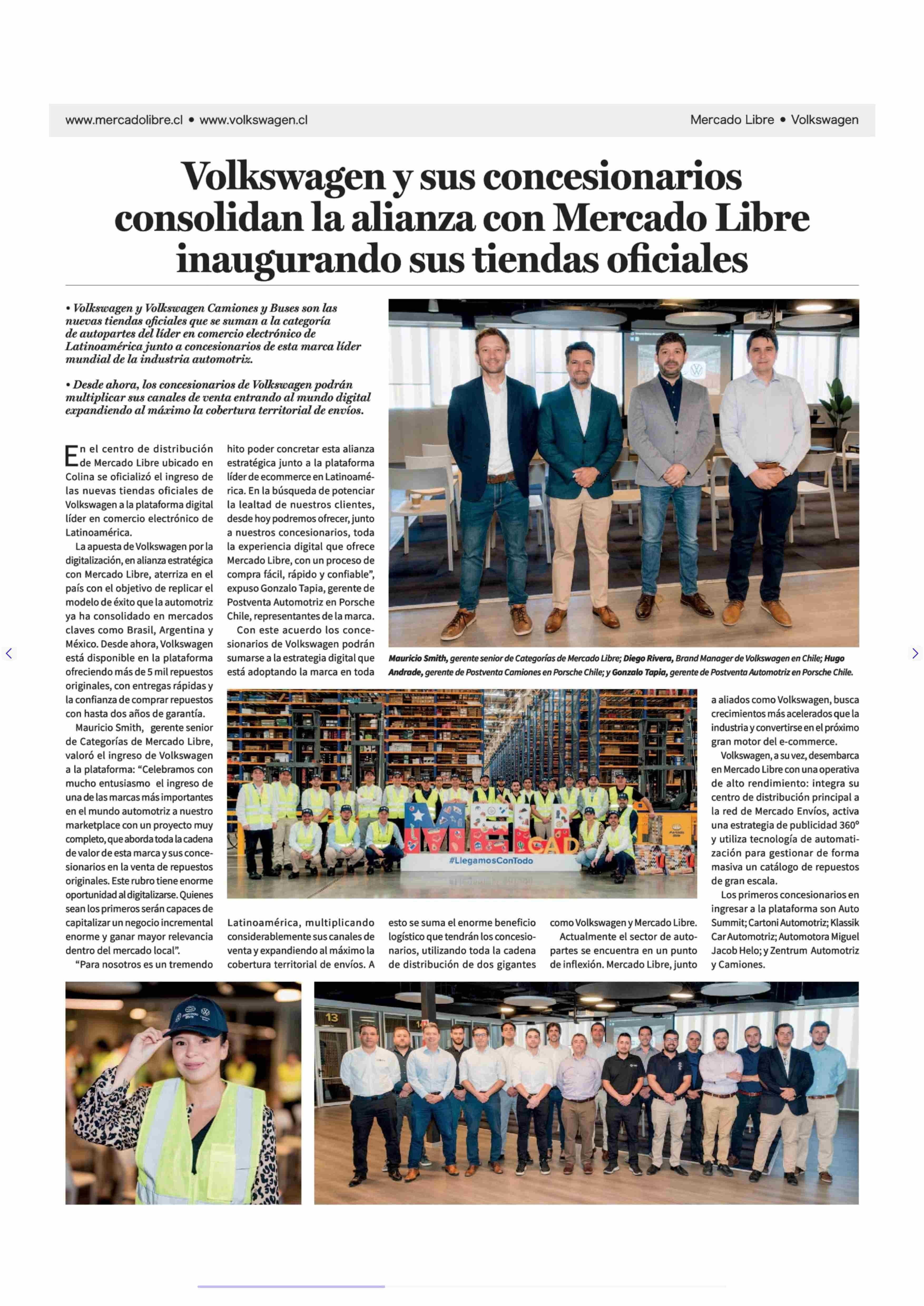 Volkswagen y sus concesionarios consolidan la alianza con Mercado Libre inaugurando sus tiendas oficiales 18-01-2026 La Tercera |