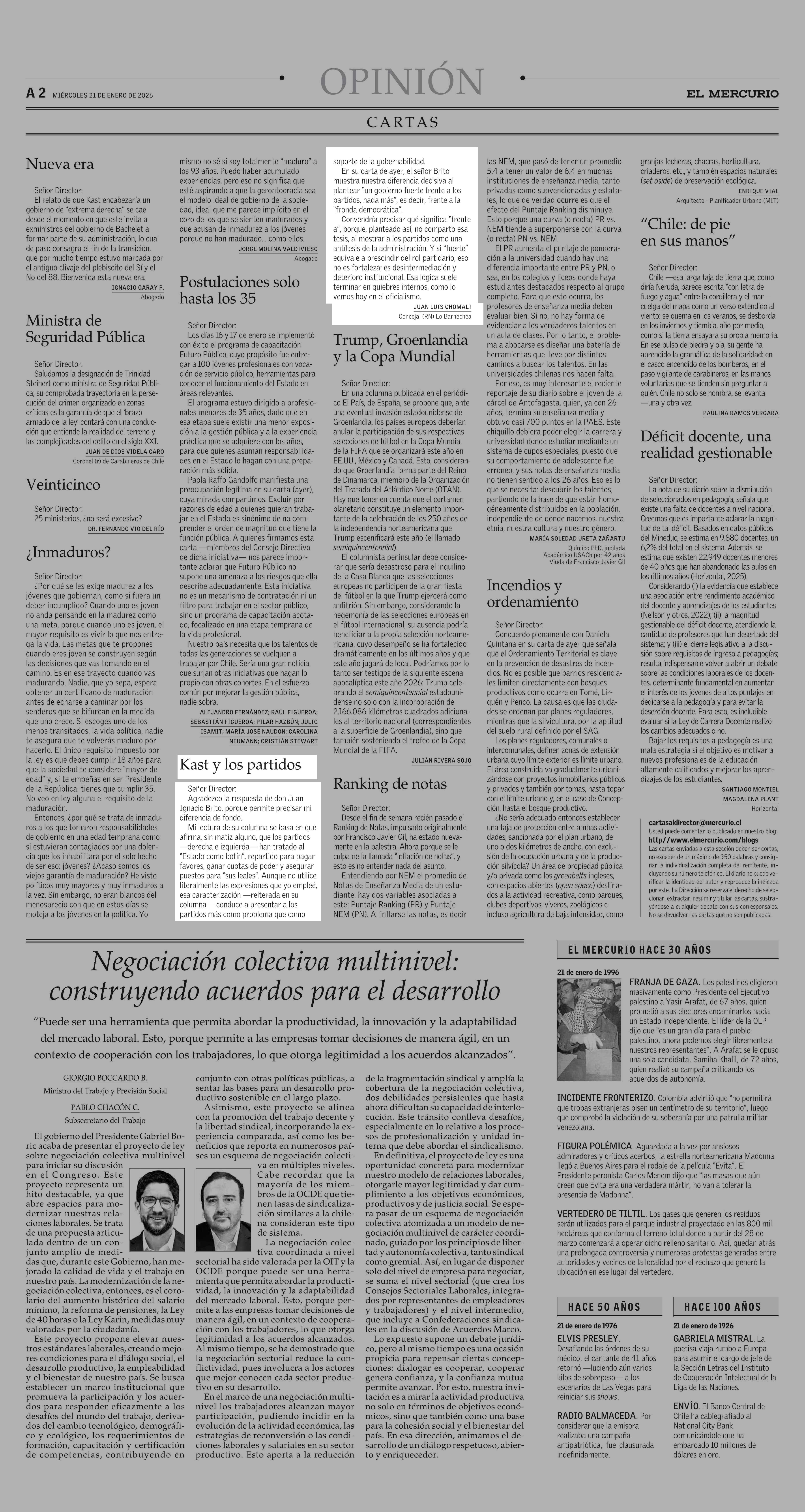 Cartas: Kast y los partidos 21-01-2026 El Mercurio |