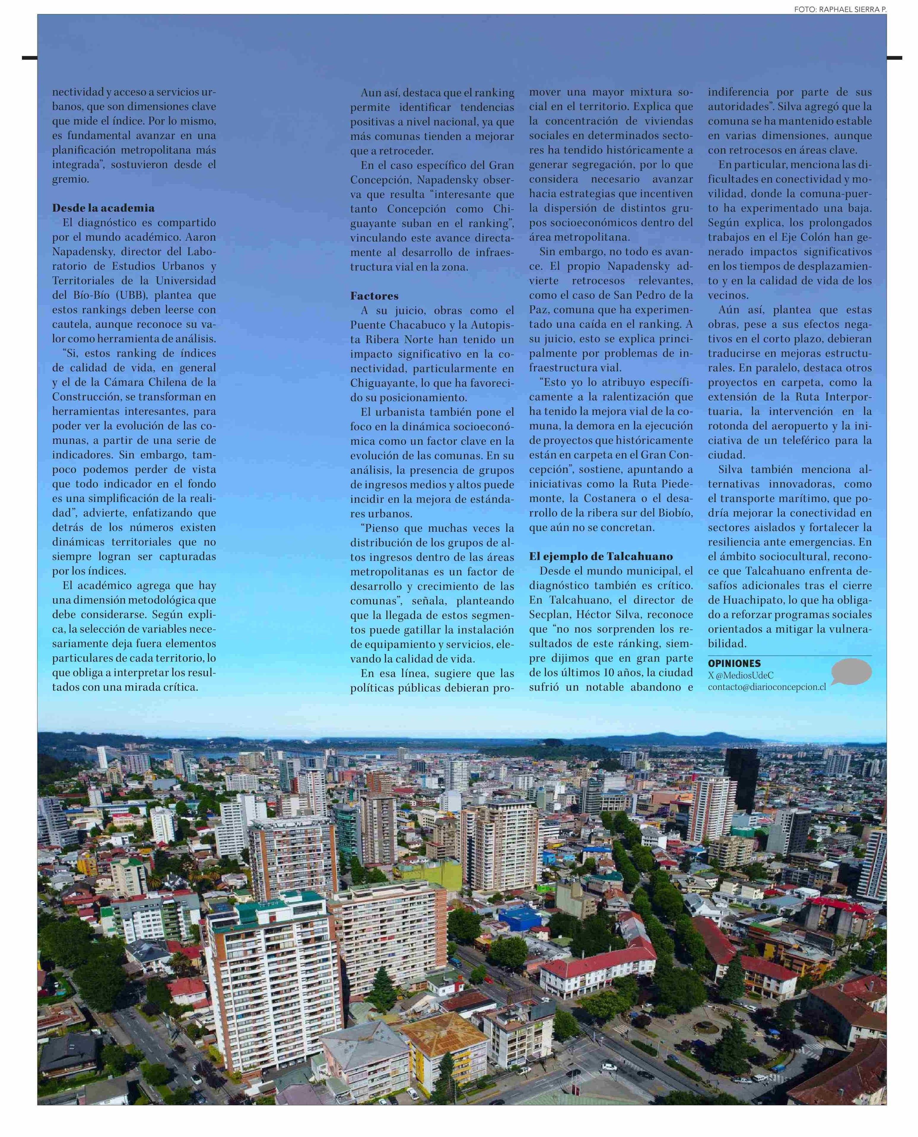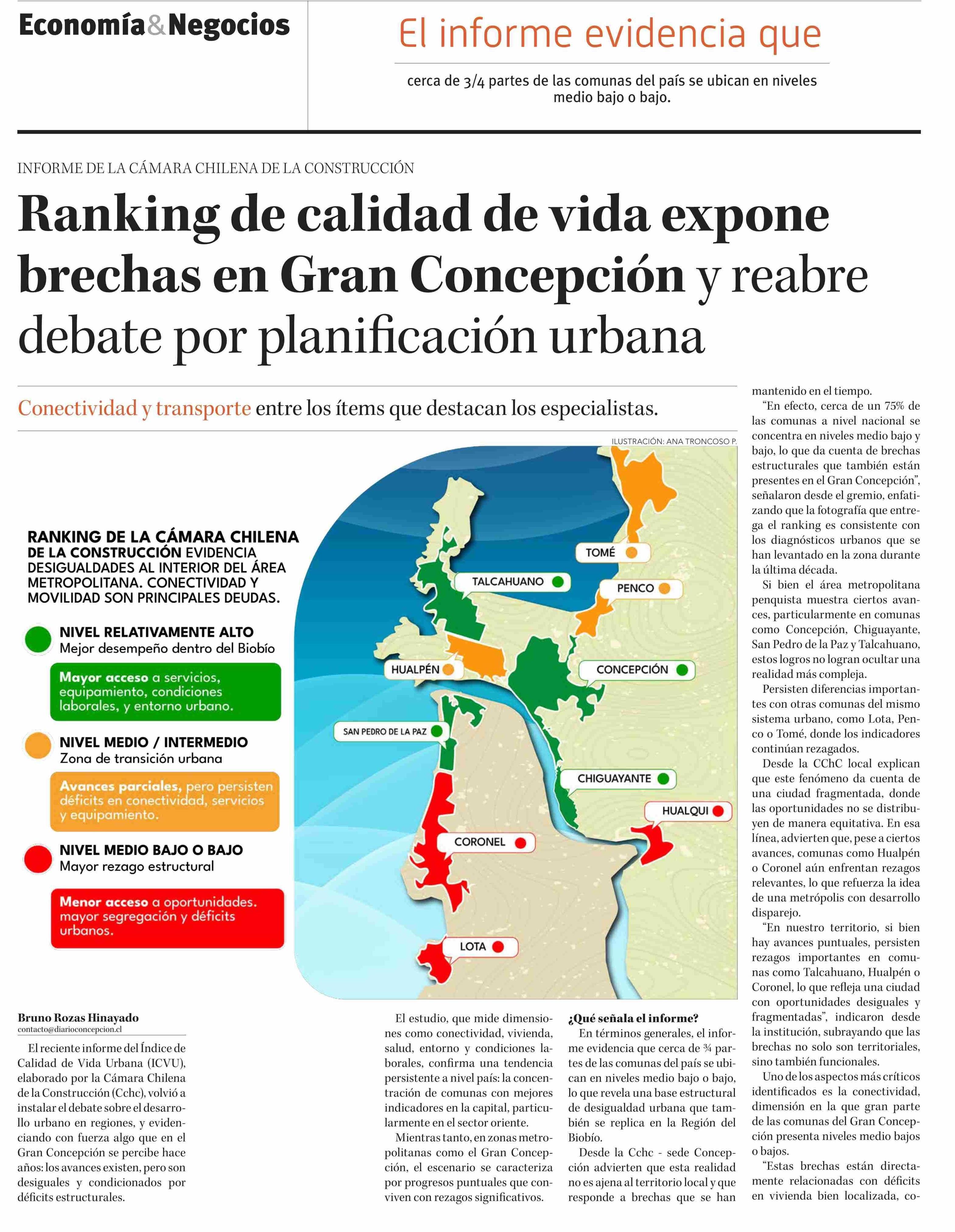Ranking de calidad de vida expone brechas en Gran Concepción y reabre debate por planificación urbana 26-04-2026 Diario Concepción |