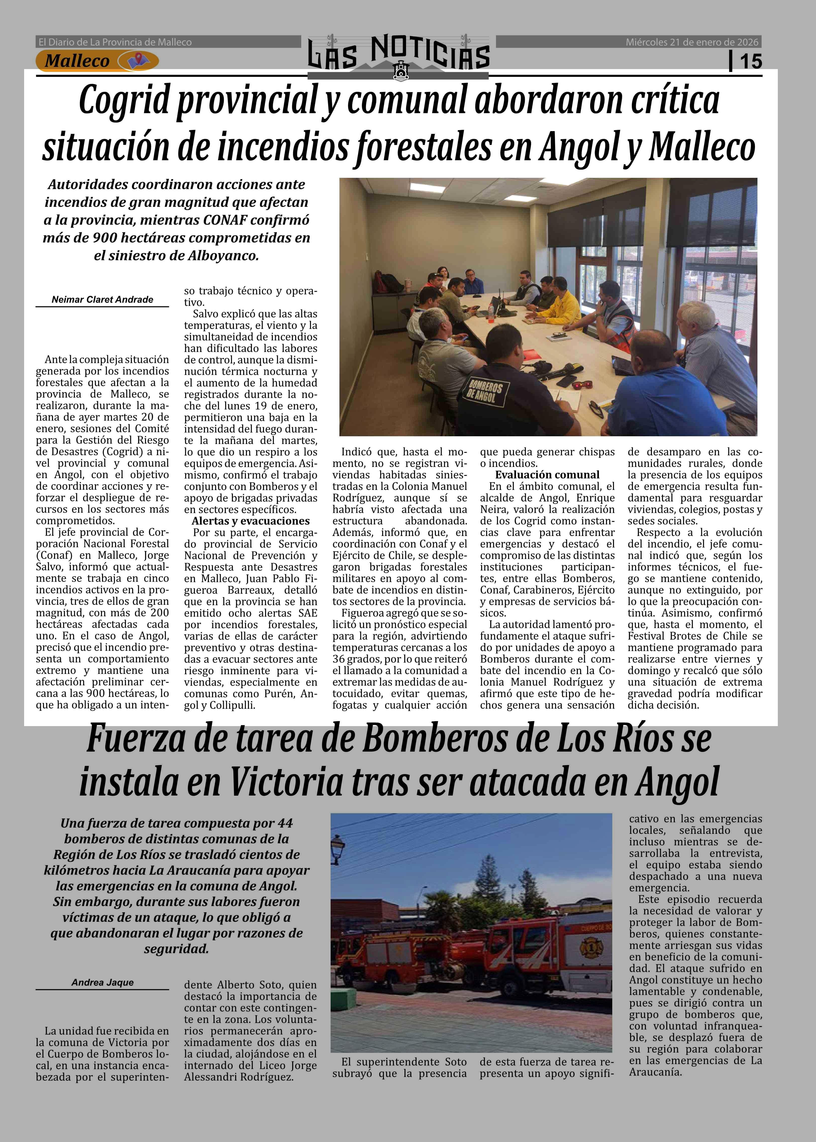 Cogrid provincial y comunal abordaron crítica situación de incendios forestales en Angol y Malleco 21-01-2026 Las Noticias |
