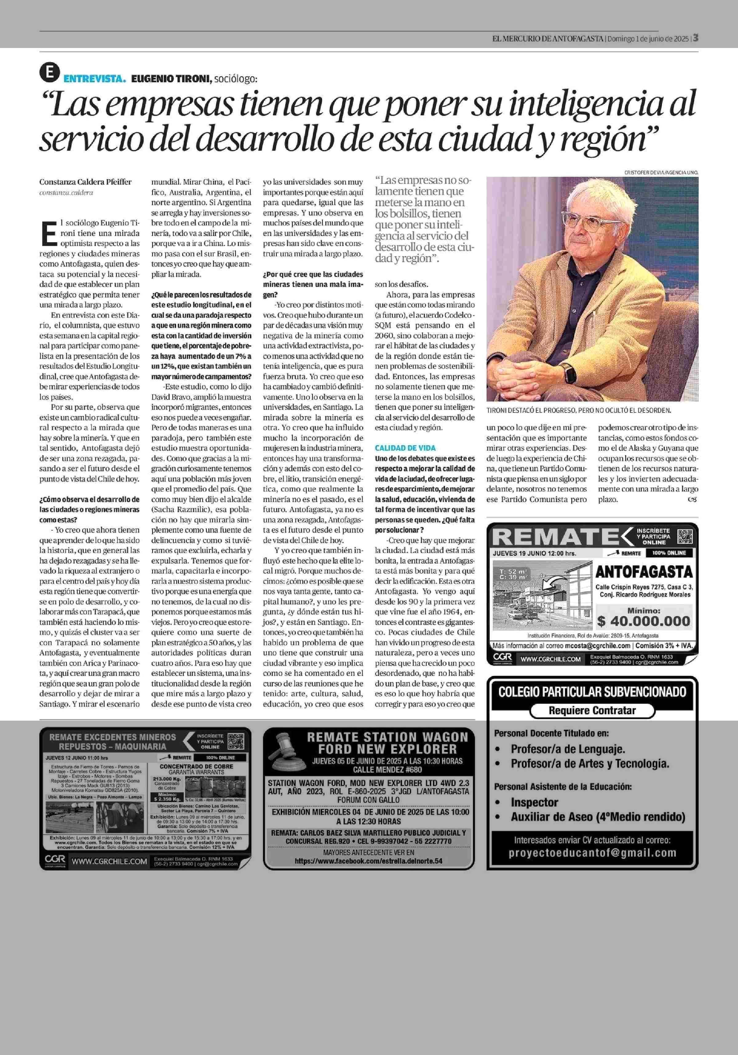 “Las empresas tienen que poner su inteligencia al servicio del desarrollo de esta ciudad y región” 01-06-2025 El Mercurio de Antofagasta |