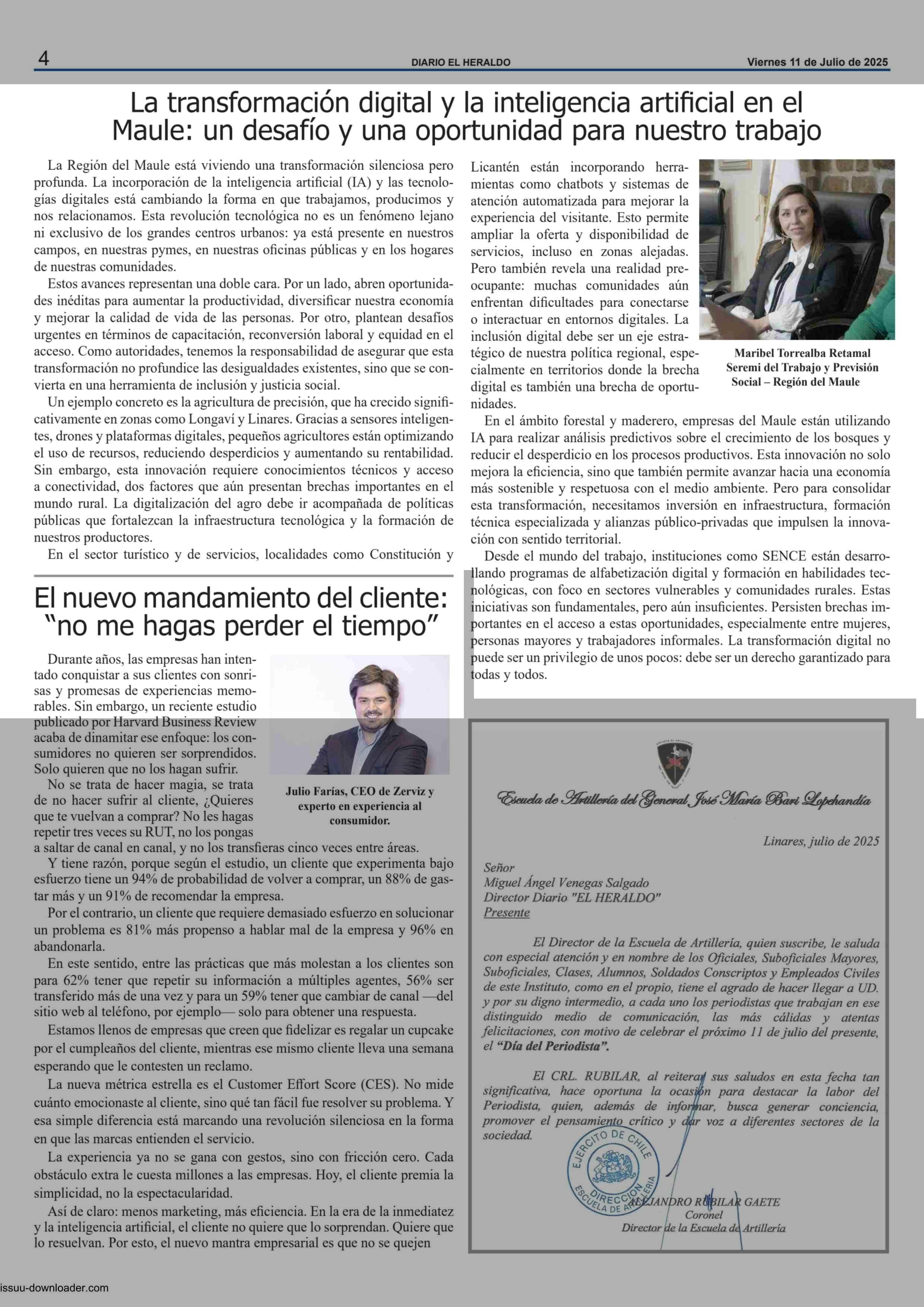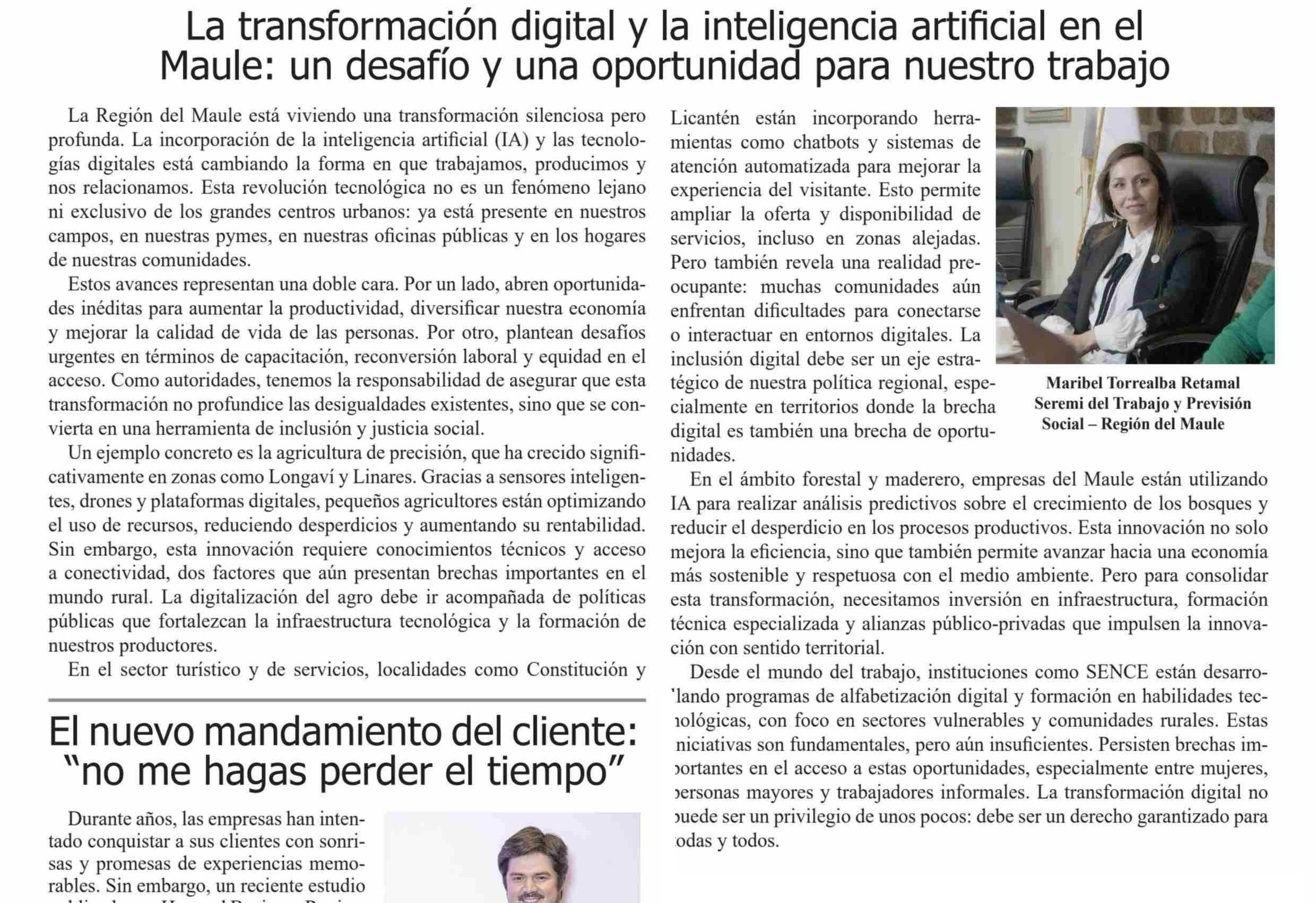 COLUMNAS DE OPINIÓN: La transformación digital y la inteligencia artificial en el Maule: un desafío y una oportunidad para nuestro trabajo 11-07-2025 El Heraldo |