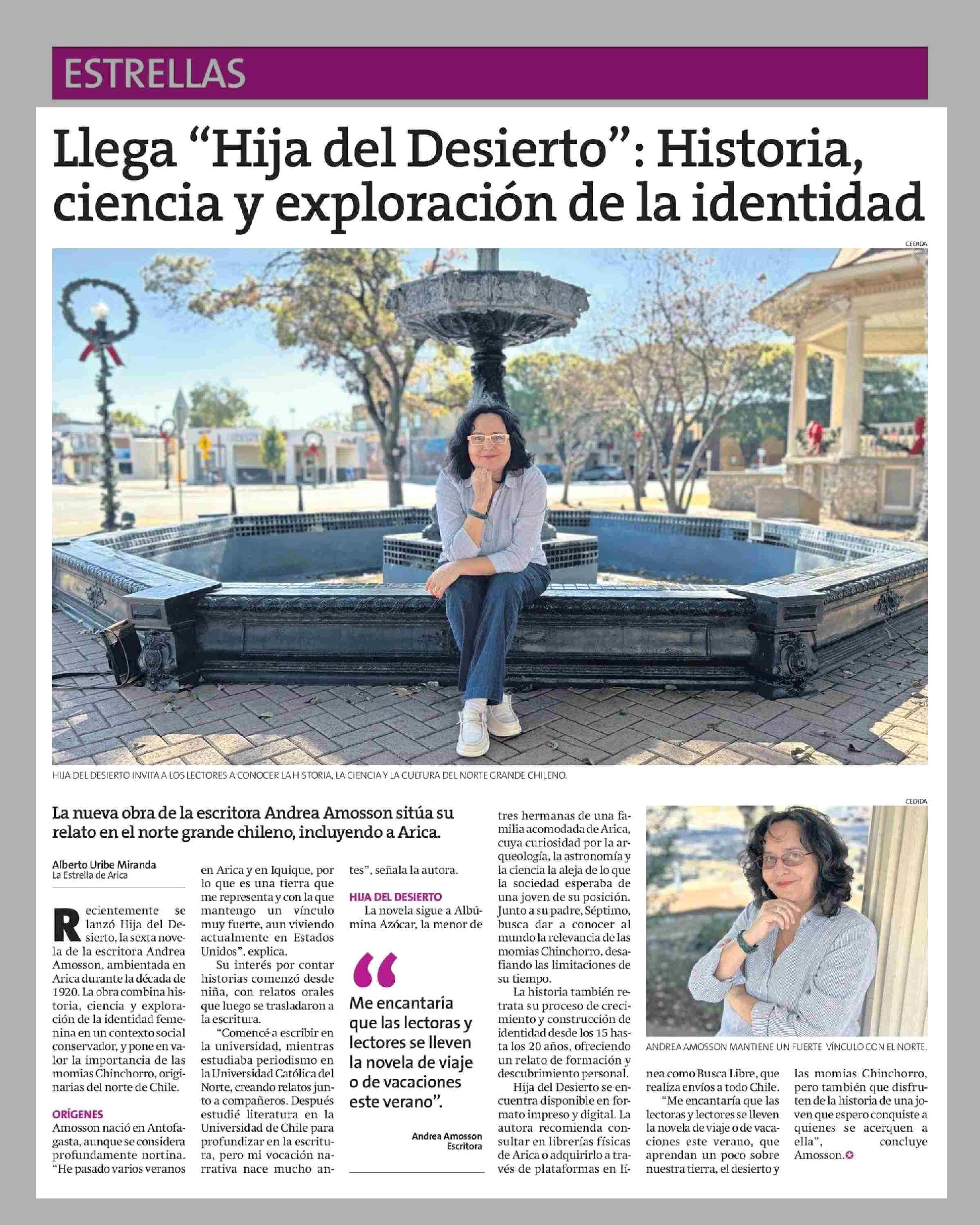 Llega "Hija del Desierto": Historia, ciencia y exploración de la identidad 14-01-2026 La Estrella de Arica |